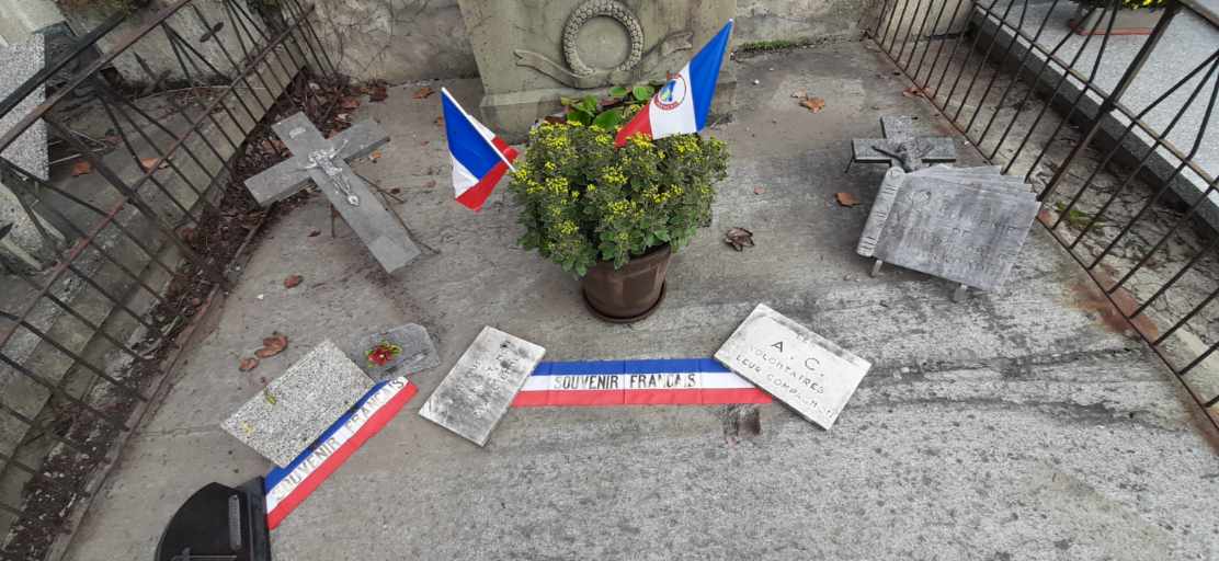 La tombe du soldat Gerlotto soldat Mort pour la France. Les gerbes ont été déposées avec le Maire adjoint référent pour le Devoir de Mémoire, la cérémonie traditionnelle n'ayant pu se tenir Covid 19 oblige.