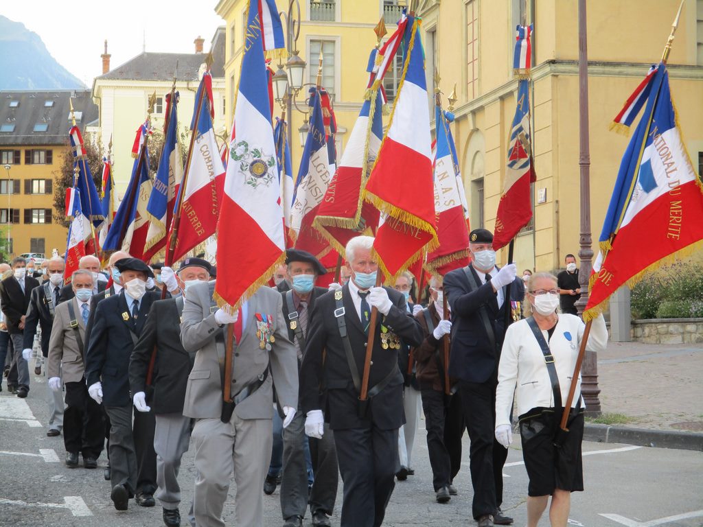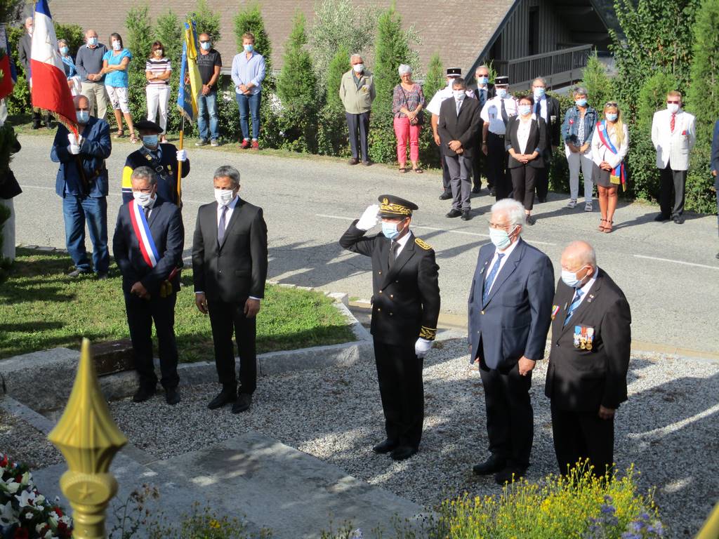 Saint-Jean-de-Maurienne et Villargondran célèbrent chaque année en commun la libération des deux communes. Ce mercredi 2 septembre 2020, la commémoration a donc débuté devant la stèle des Curiets à Villargondran. M Philippe Rossi, Maire de Villargondran, évoqua l’historique de cette Libération. En présence de Mr Kevin Poveda, sous-préfet, des représentants civils et militaires, de la Délégation Générale du Souvenir Français de Savoie : Henri Gottero et Arlette Routin, secrétaire, de Pierre Gaden, président du comité local de Saint Jean de Maurienne et des porte-drapeaux.