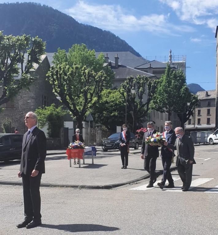 La cérémonie du 8 mai 2020 s’est déroulée en présence du Sous- Préfet M. MATHAUX, de la députée Emilie Bonnivard, de l'ancien maire Roland Merloz, du maire encore en titre Pierre Marie Charvoz, du futur maire dans quelques jours Phillippe Rollet, du porte drapeau représentant les anciens combattants en l'absence de Georges Barbon Président et de Pierre Gaden Président du comité du Souvenir Français de Maurienne.