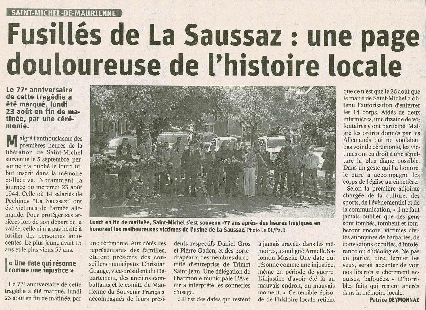 Ce lundi 23 août 2021, un hommage a été rendu pour le 77ème anniversaire des 14 fusillés de la Saussaz, tous employés à Péchiney.