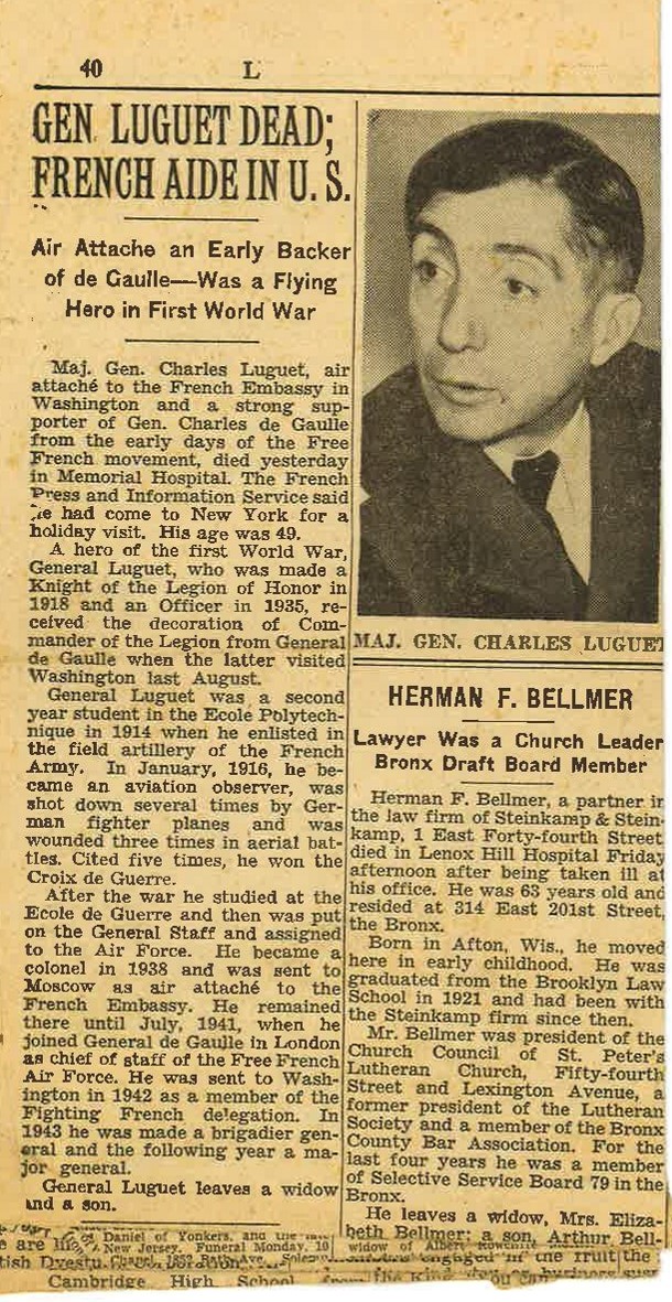 En mars 1942 Charles Luguet est affecté aux USA comme attaché de l'Air à l'ambassade de France à Washington et commandant des éléments de la France Libre stationnés aux USA. Il décède au memorial Hospital de New-york le 14 décembre 1945 des suites d'un cancer provoqué par ses blessures de 1918.