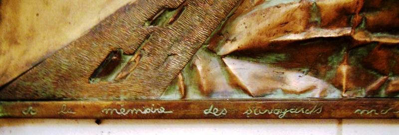 Une gerbe a été déposée devant la plaque des Savoyards de Paris Morts pour la France, église Saint-François de Sales dans le XVII°.