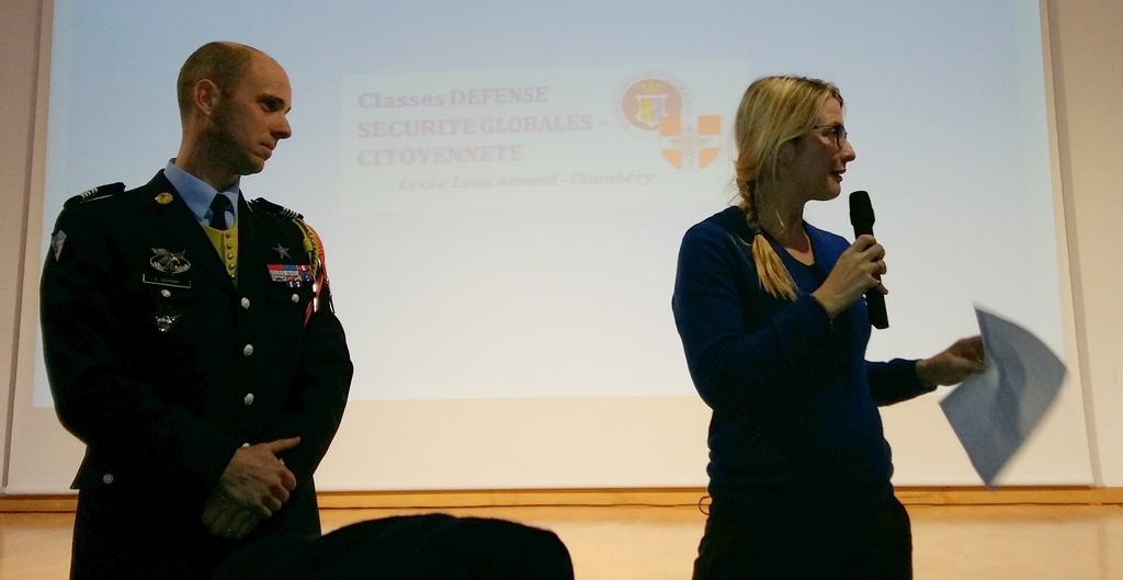 Le 6 décembre dernier, dans l’amphithéâtre du lycée, s’est déroulée la reconduction du partenariat entre le 13ème Bataillon de Chasseurs Alpins de Chambéry et du lycée, en présence du proviseur Luc Clouet, du colonel Emmanuel Devigne, commandant le 13ème BCA, de madame Laure Bonnet, professeure responsable des classes « citoyenneté défense ».