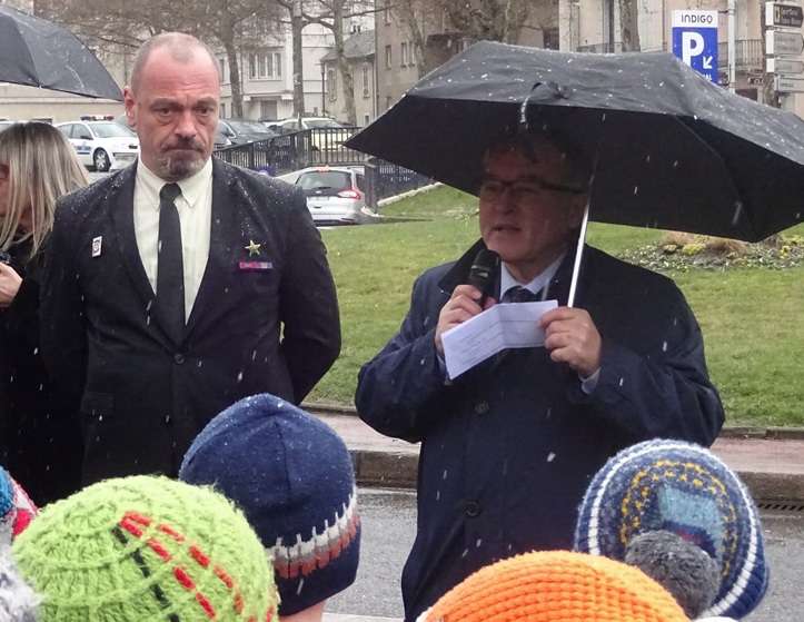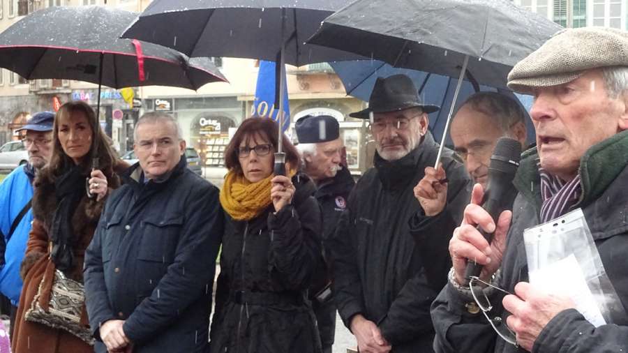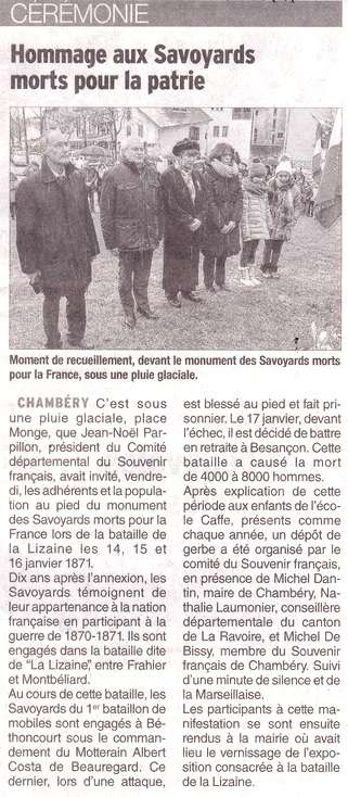 Sous les flocons, les Chambériens, Anciens Combattants, écoliers et membres du Souvenir Français de Savoie conduits par le Délégué Général, Jean-Noël Parpillon, sont venus rendre hommage aux combattants savoyards morts pendant la guerre de 1870.