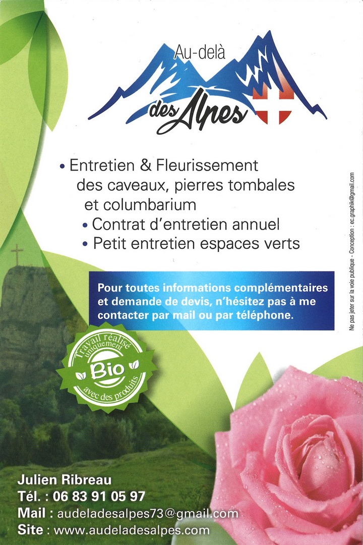 Monsieur Julien RIBREAU est un ancien militaire du 13e Bataillon de Chasseurs Alpins, blessé en Afghanistan. Pour sa reconversion et avec son épouse, il a créé son entreprise d’entretien et de fleurissement des tombes en 2017, basée à la Motte-Servolex.