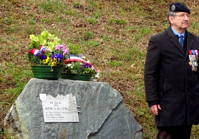 - aux Monument aux Morts de la commune en mémoire des résistants et déportés lors de la seconde Guerre Mondiale. La lecture de textes par les élèves de Mr Cédric Brunier, professeur au collège d'Aiguebelle a ému toutes les personnes présentes.