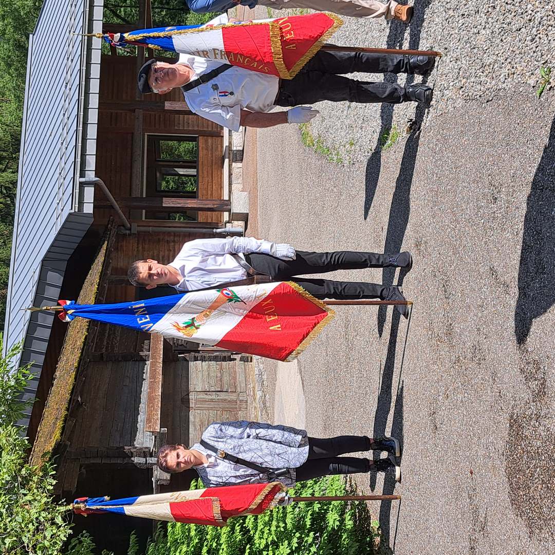 En effet, une cérémonie sur les lieux permettait à tous, de se recueillir dans la Nécropole de Morette, le matin en présence de monsieur Métral, président de l’Association des Glières, qui nous fit un compte rendu des faits historiques, de messieurs Michel Flahaut, Délégué Général de Haute-Savoie et Patrick Lecuppre, Directeur de l’ONaCVG – Haute-Savoie.