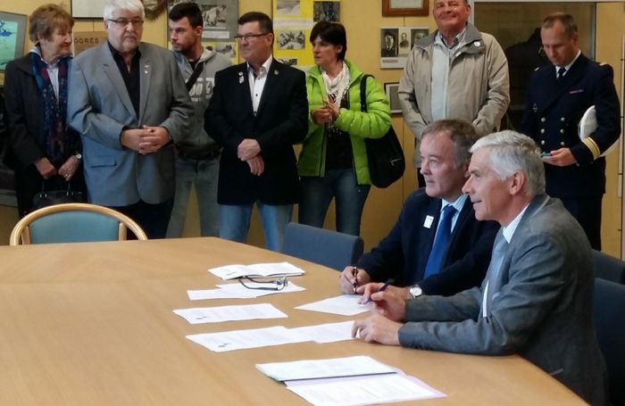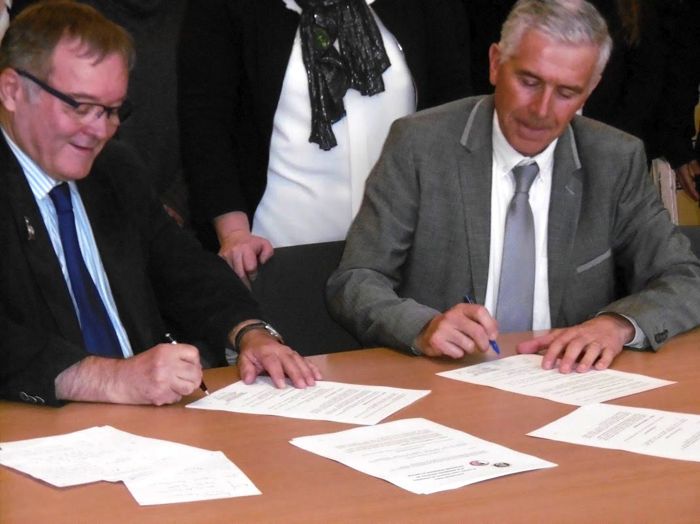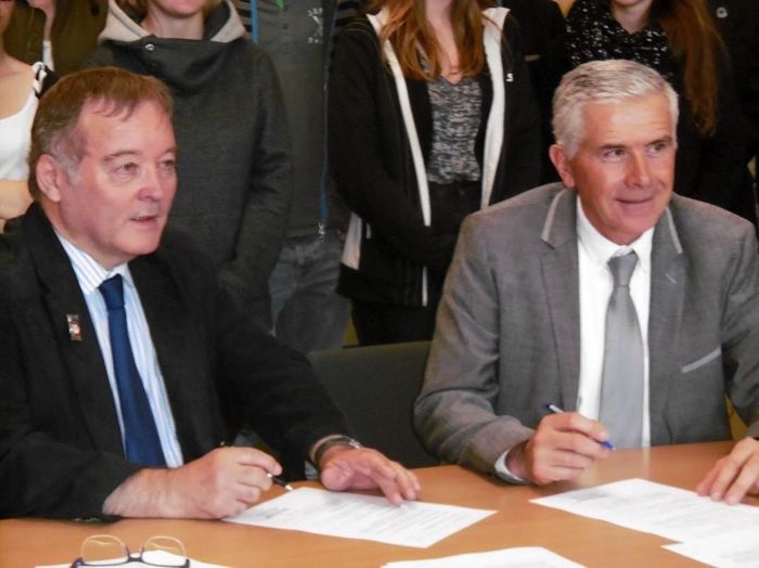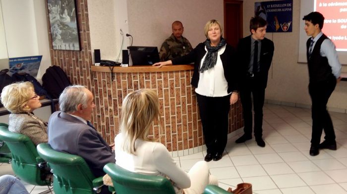 Après une chaleureuse intervention d’accueil du Colonel Lancrenon, et de la brillante présentation de Madame Laure BONNET, professeure des Classes Défense Sécurité Globales et Citoyenneté du Lycée Louis Armand de Chambéry et des diverses actions menées en 2015 et 2016, Messieurs Luc Clouet proviseur et Jean-Noël Parpillon délégué général du Souvenir Français de Savoie procédèrent à la signature de partenariat.