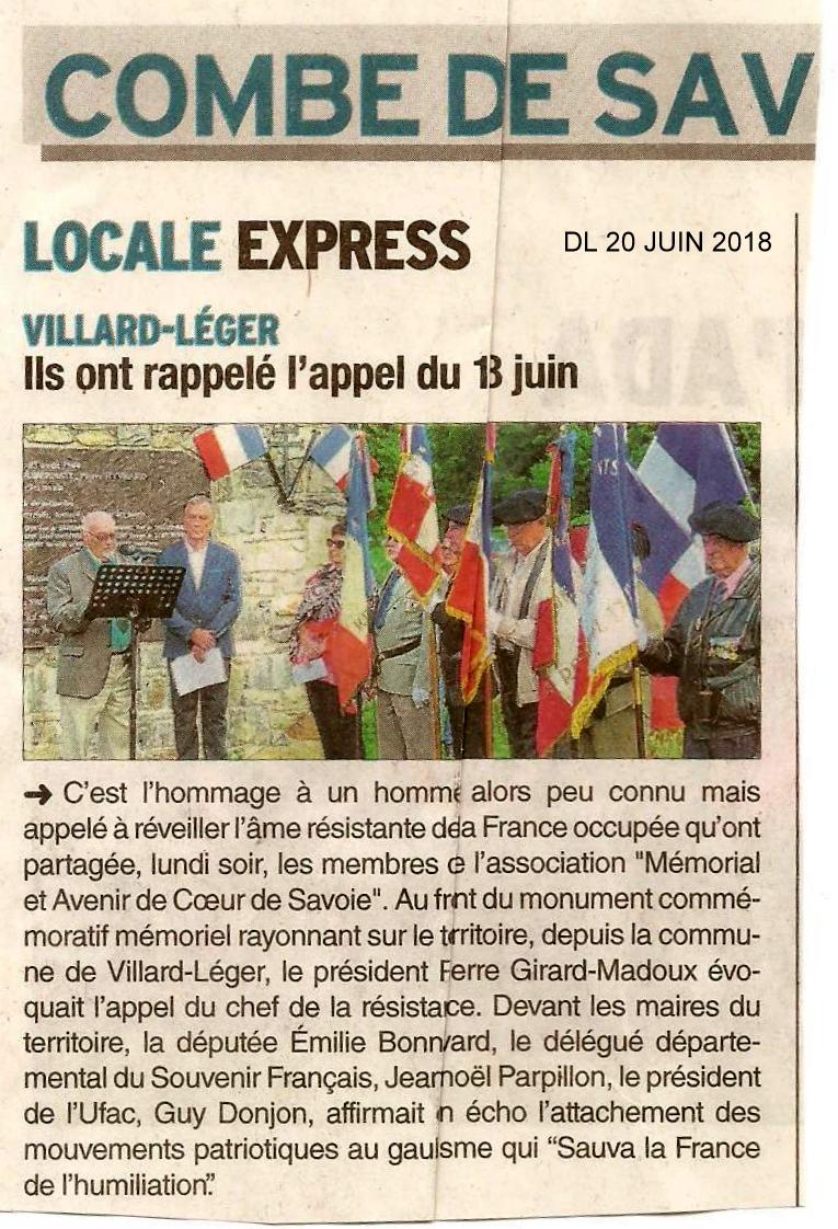 Ce 18 juin 2018, à Villard-Léger, s'est déroulé une cérémonie commémorative de l'appel du Général de Gaulle.