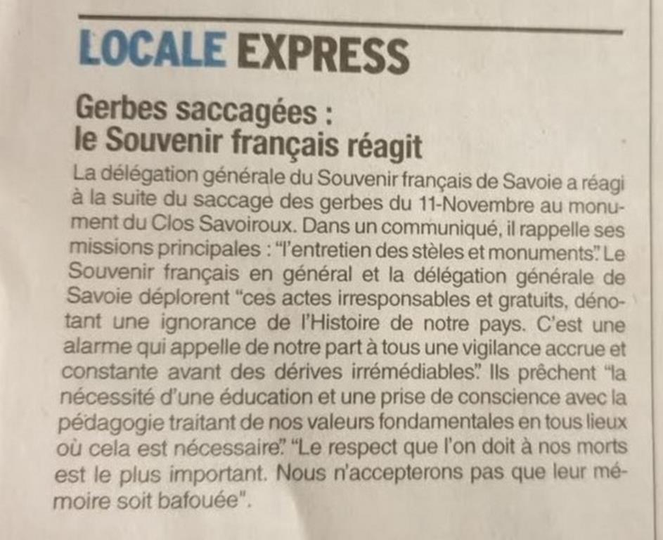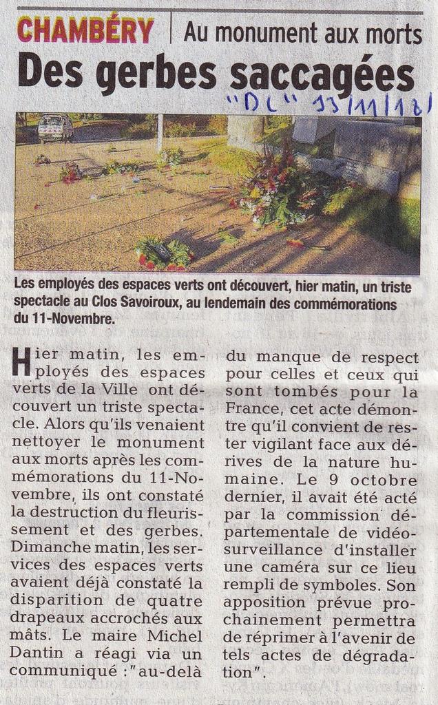 Voici un article, paru dans le Dauphiné Libéré, de la Mairie de Chambéry et un article du Souvenir Français.