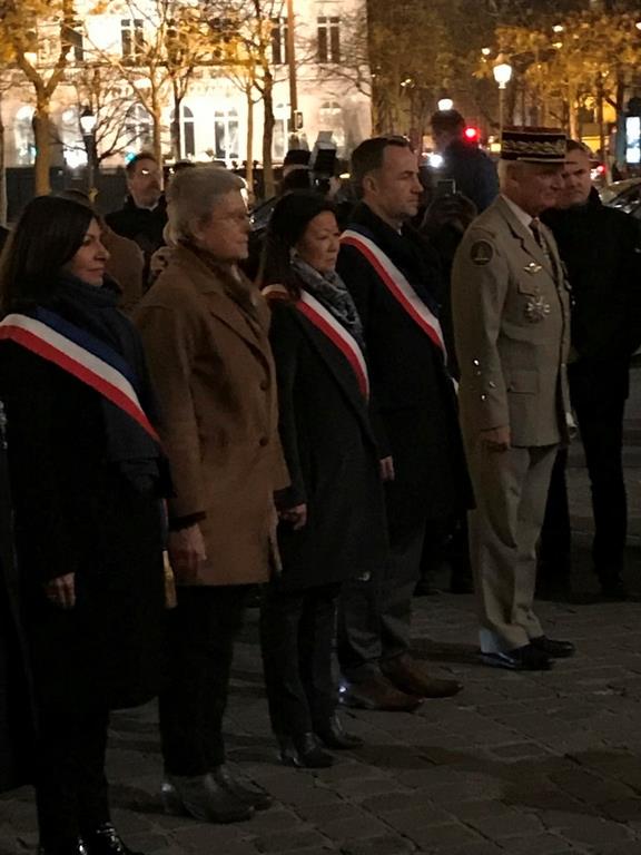 En présence de la secrétaire d’État aux anciens combattants, de la maire de Paris, de celle du 8e arrondissement, d’un autre maire et de nombreux présidents d’associations dont notre président général du Souvenir Français, le ravivage de la Flamme se déroule comme toujours depuis le 11 novembre 1923.