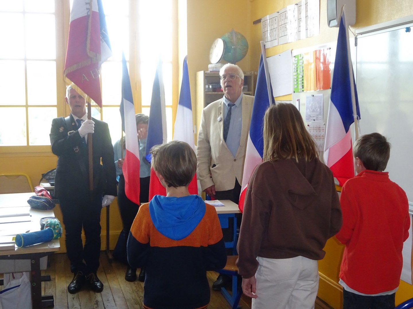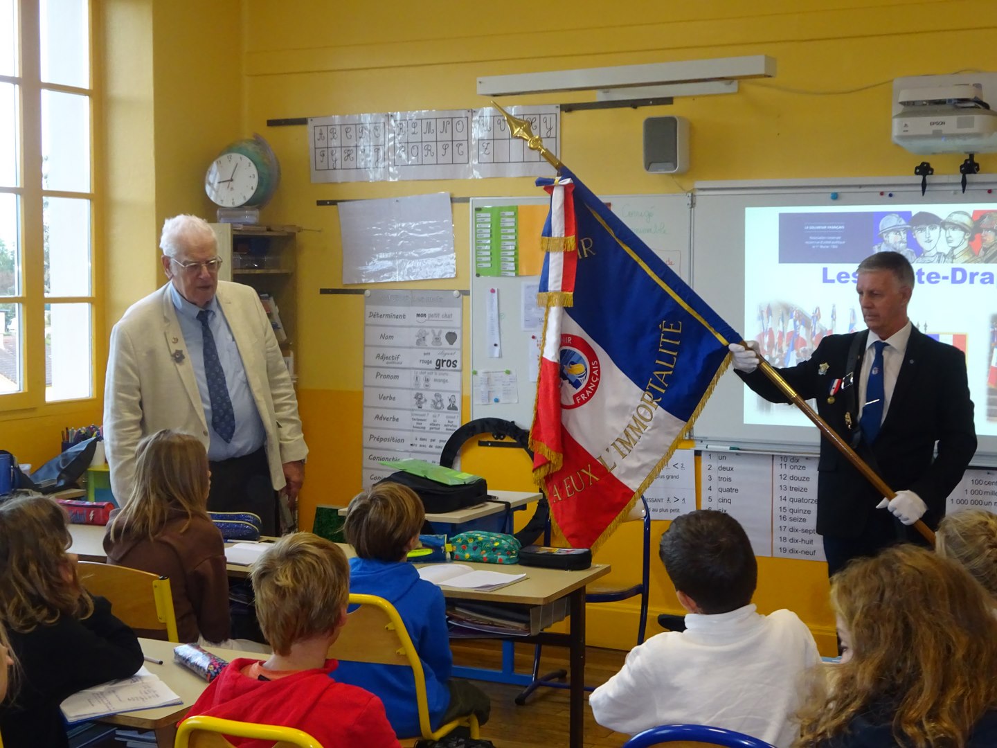 Tous les élèves furent très attentifs et participèrent avec des questions pertinentes qui laissent présager d’un beau retour de transmission. (Participation lors des cérémonies et futurs porte-drapeaux)