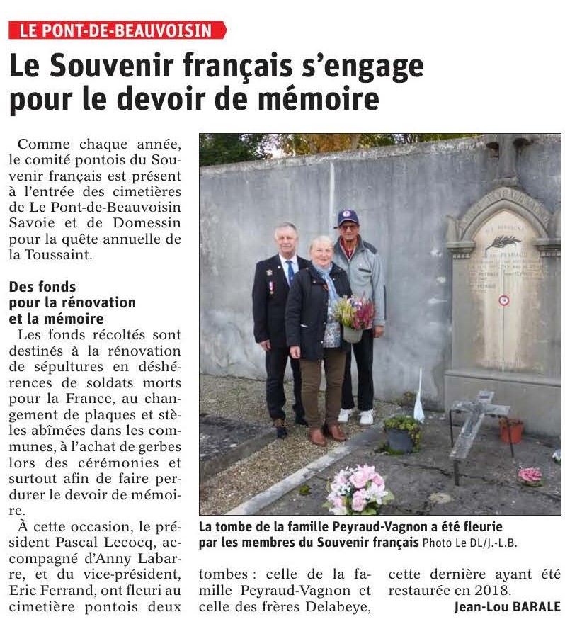 Le samedi 30 mars 2019, inauguration de la tombe de trois soldats : Les frères Delabeye réhabilitée par le Comité de Pont de Beauvoisin Savoie.