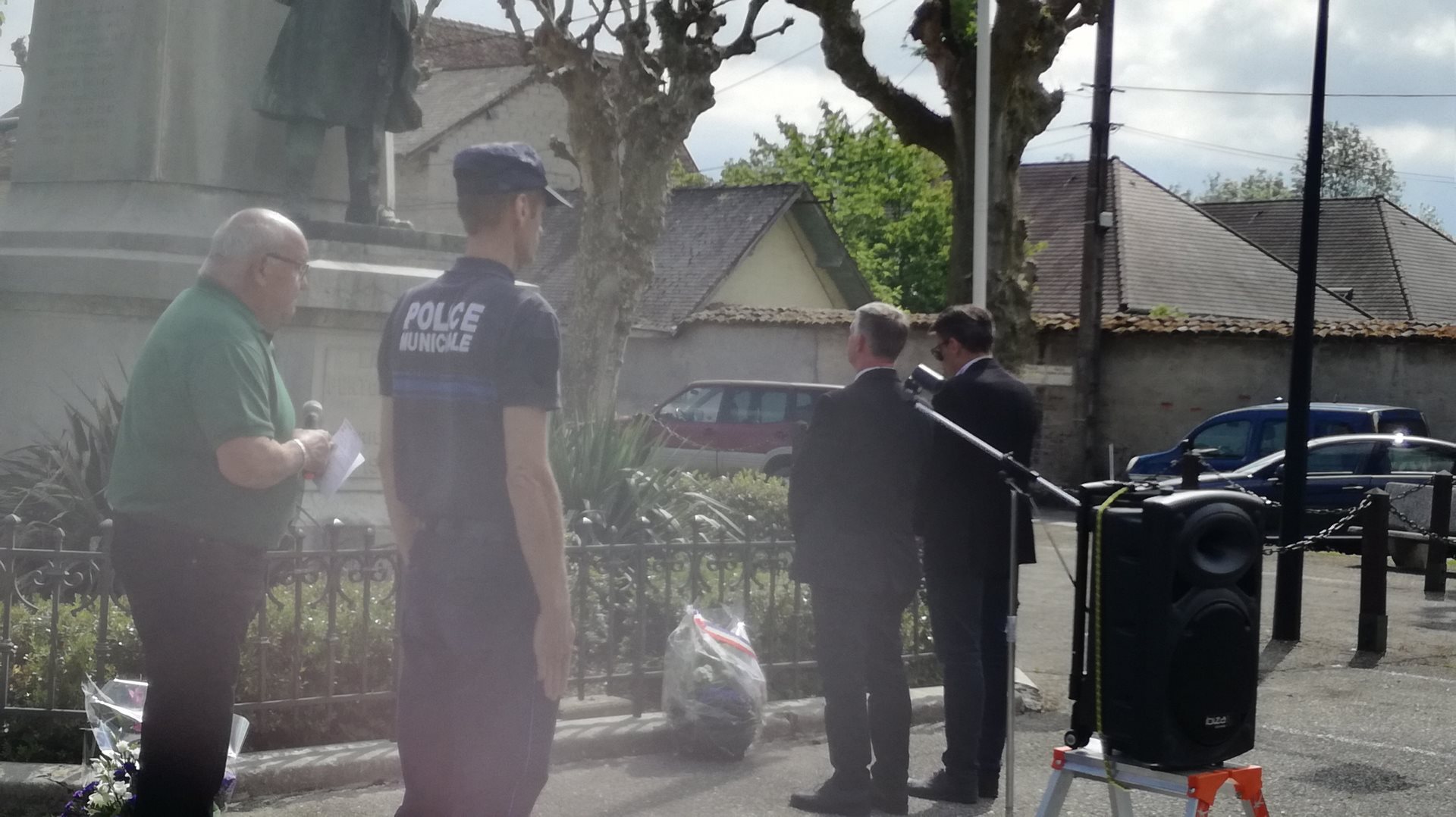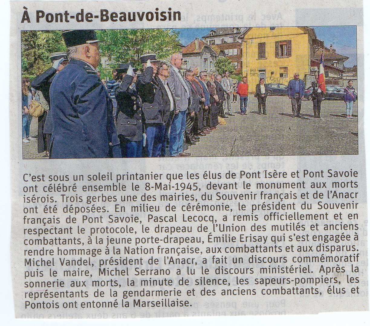 Cérémonie du 8 mai 2019 : 74ème anniversaire de la capitulation de l'Allemagne. C'est sous la pluie que la cérémonie c'est déroulée ! Merci à la présences des élus des deux Pont de Beauvoisin , à la gendarmerie, aux sapeurs pompiers, à Mme Lardeux ( Enseignante aux Allobroges) accompagnée de quelques élèves qui ont énuméré le nom des soldats morts pour la France du monument aux morts sous l’abri du Président du Souvenir Français pontois : Lecocq Pascal.