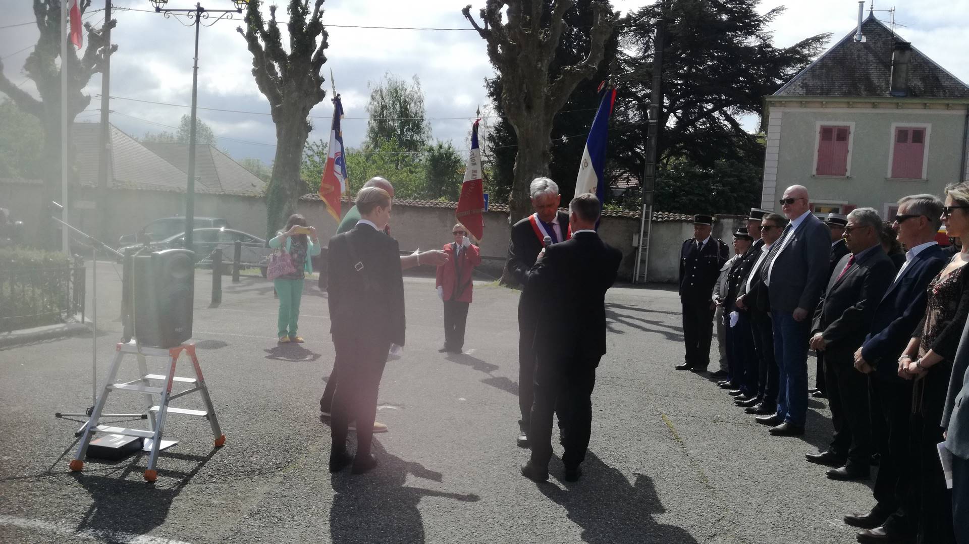 Avant d’achever cette brève cérémonie, les autorités ont remercié d’un geste amical les 2 porte-drapeaux de leur présence.