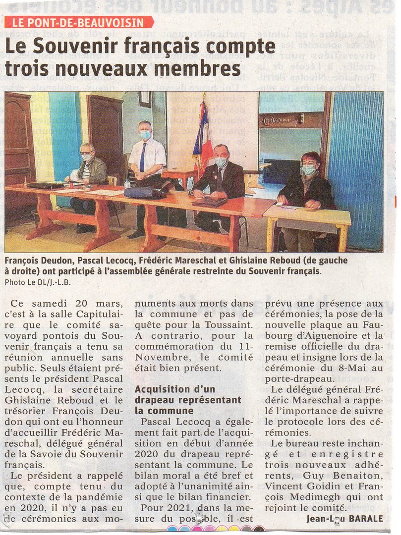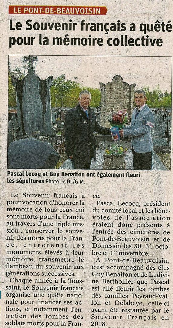 Le Souvenir Français était représenté, pour la Savoie, par Jean-Yves Sardella, délégué général /I, Pascal Lecocq, président du comité de Pont de Beauvoisin Savoie, ainsi que des représentants de l'Isère.
