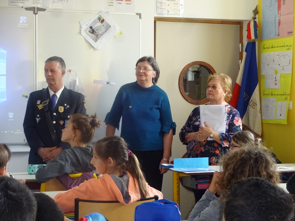 Lundi 16 octobre 2023, Jean-Yves Sardella, DGA, Edith Sardella, trésorière de la DG de Savoie et Pascal Lecocq, président du comité de Pont de Beauvoin sont intervenus dans la classe de CM2 CM1 suite à la demande de Mme Fabienne Bois, institutrice. Etait aussi présente Mme Véronique Jourdan, adjointe municipale.