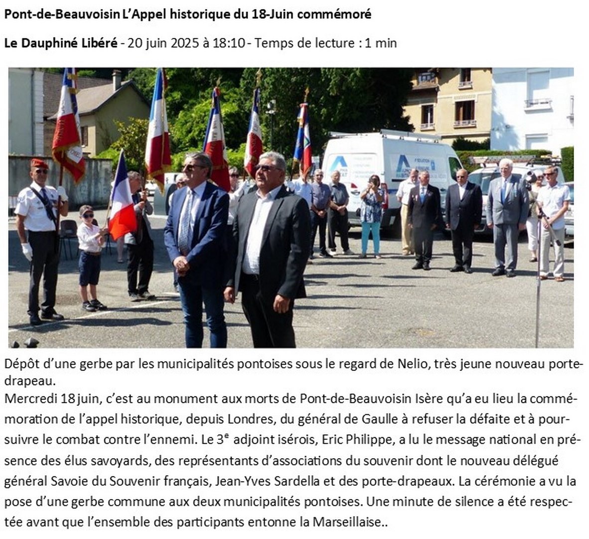 C'est à Pont de Beauvoisin Isère que la commémoration de "l'Appel du 18 juin 1940" du général De Gaulle, s'est déroulée ce 18 juin 2025;