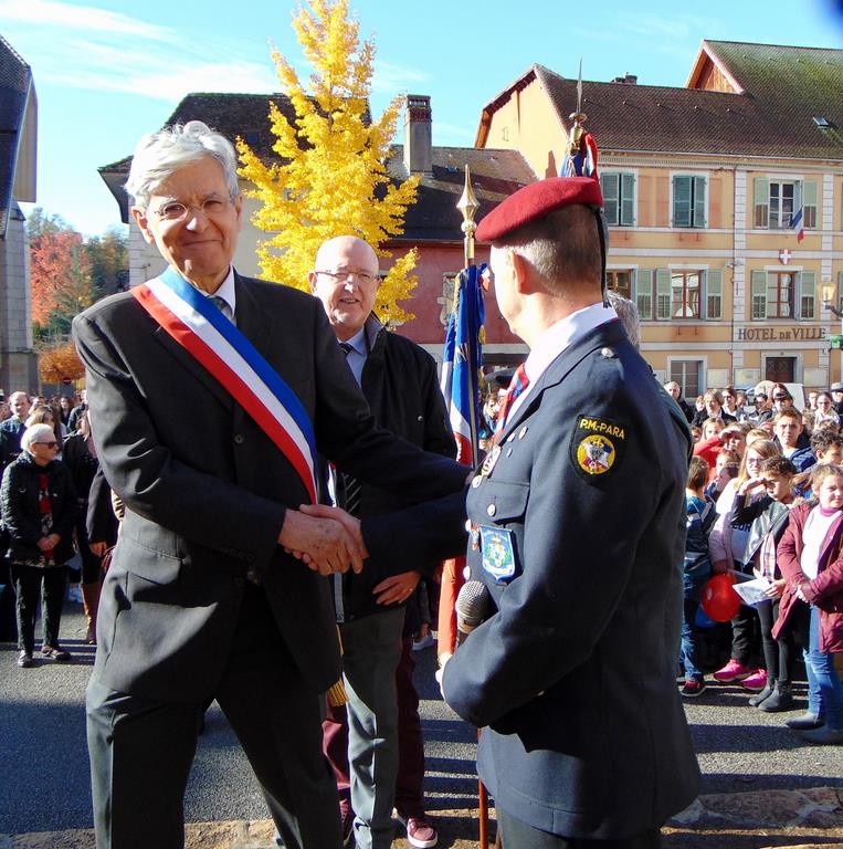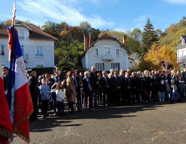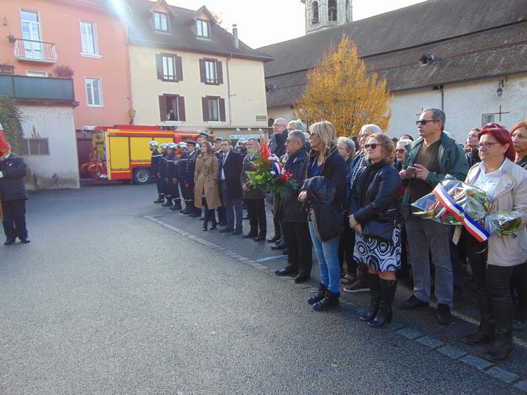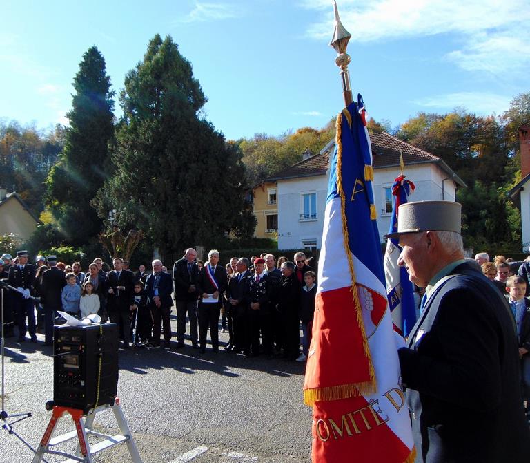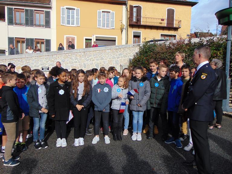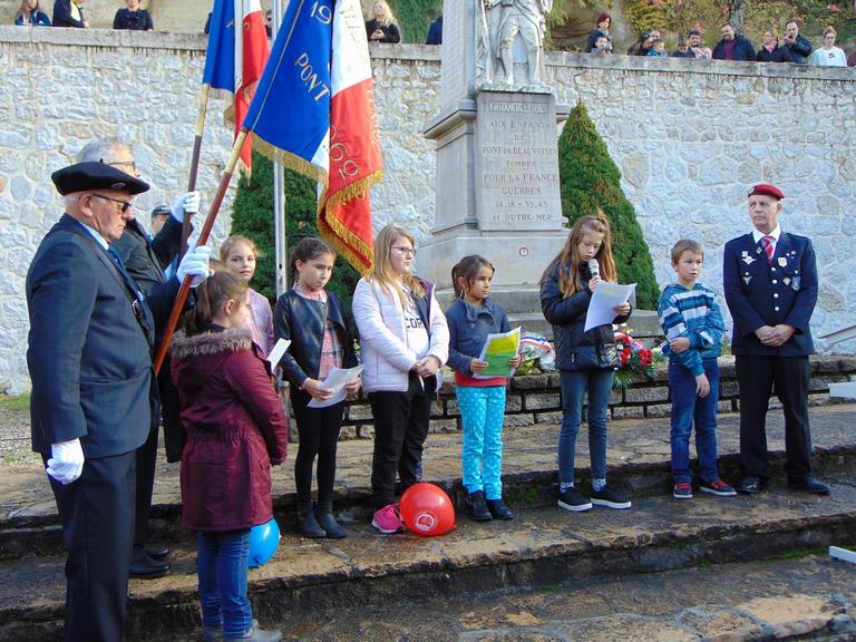 Le Souvenir Français était présent aux cérémonies de Pont de Beauvoisin Savoie et Isère, grâce à l’intervention dans les classes primaires l’année dernière, les institutrices ont répondu présentes cette année avec des classes de l'école de Pont Savoie et Isère pour lire des lettres de poilus et chanter la Marseillaise, En Savoie, le maire n'étant pas présent l'adjoint m'avait demandé d'être le maître de cérémonie. Ce que j'ai fait et pour la première fois le protocole a pu être respecté. Nous avons aussi ce jour-là été sollicité par le maire de Domessin (Conseiller général) pour être présent à leur salle des fêtes pour une expo et faire connaître le Souvenir Français, j'avais mis en place Ludivine, puis l’après-midi avec Annie et mon porte drapeau Raynald nous sommes allés à Pressins (Isère) pour spectacle du wagon de Rothonde. Pascal Lecocq, président du comité.