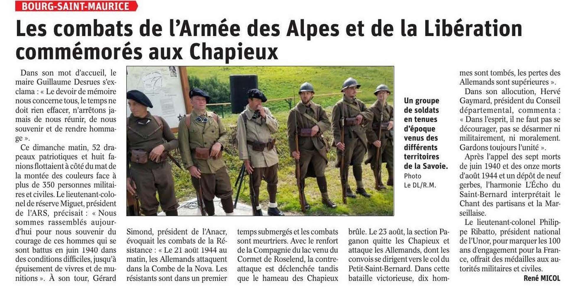 Dimanche 3 juillet 2022 , comme chaque année, un vibrant hommage aux combattants et résistants des Chapieux, tombés en 1940 et 1944, fut rendu,