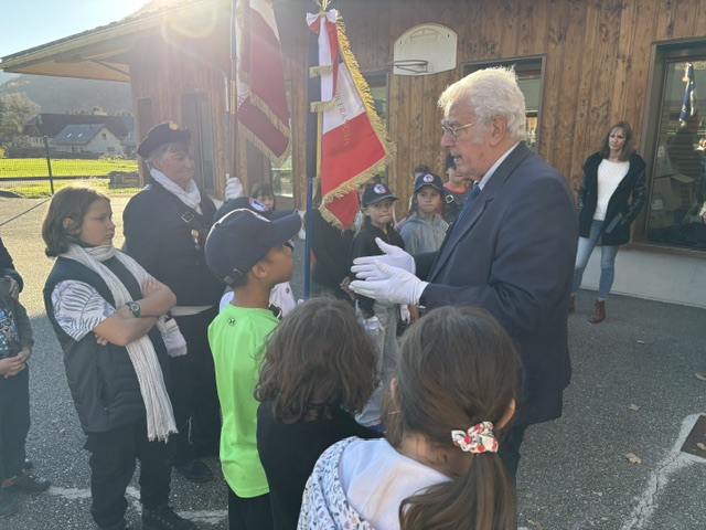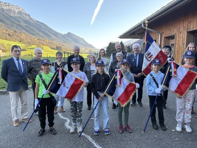 Le 4 novembre, la délégation générale, représentée par Jean-Yves Sardella, délégué général, Edith Sardella, trésorière générale et Jean-Marc Vesin, secrétaire général, Nicole Guéry et Patricia Nave, pour le comité des Bauges, étaient là pour remettre les drapeaux à l'école de Aillon le Jeune et Allon le Vieux, puis au RPI des Hautes Bauges qui regroupe les élèves de Ecole, La compote, Doucy, Jarsy et Sainte Reine en présence des maires où de leurs représentants, de parents d'élèves.