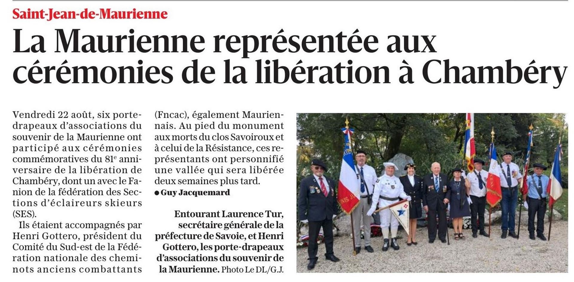 Le Souvenir Français était représenté par le délégué général adjoint, Charles Antoine Bouttaz et Jean-Marc Vesin, secrétaire de la délégation et représentant le comité de Chambéry-Cognin.