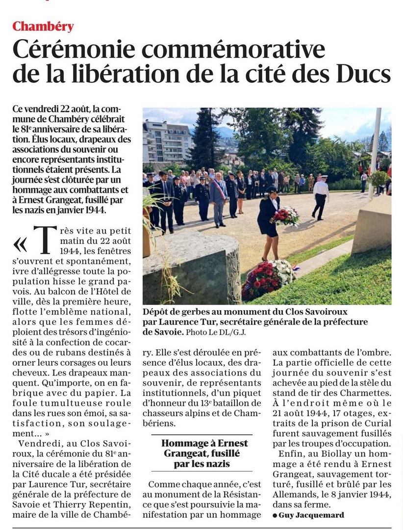 Jeudi 21 août 2025 s'est déroulée la cérémonie pour commémorer le 81ème anniversaire de la Libération de la ville. en présence des autorités civiles et militaires, des associations d'anciens combattants, du Souvenir Français , représenté par Jean-Yves Sardella, délégué général et des membres de plusieurs comités.
