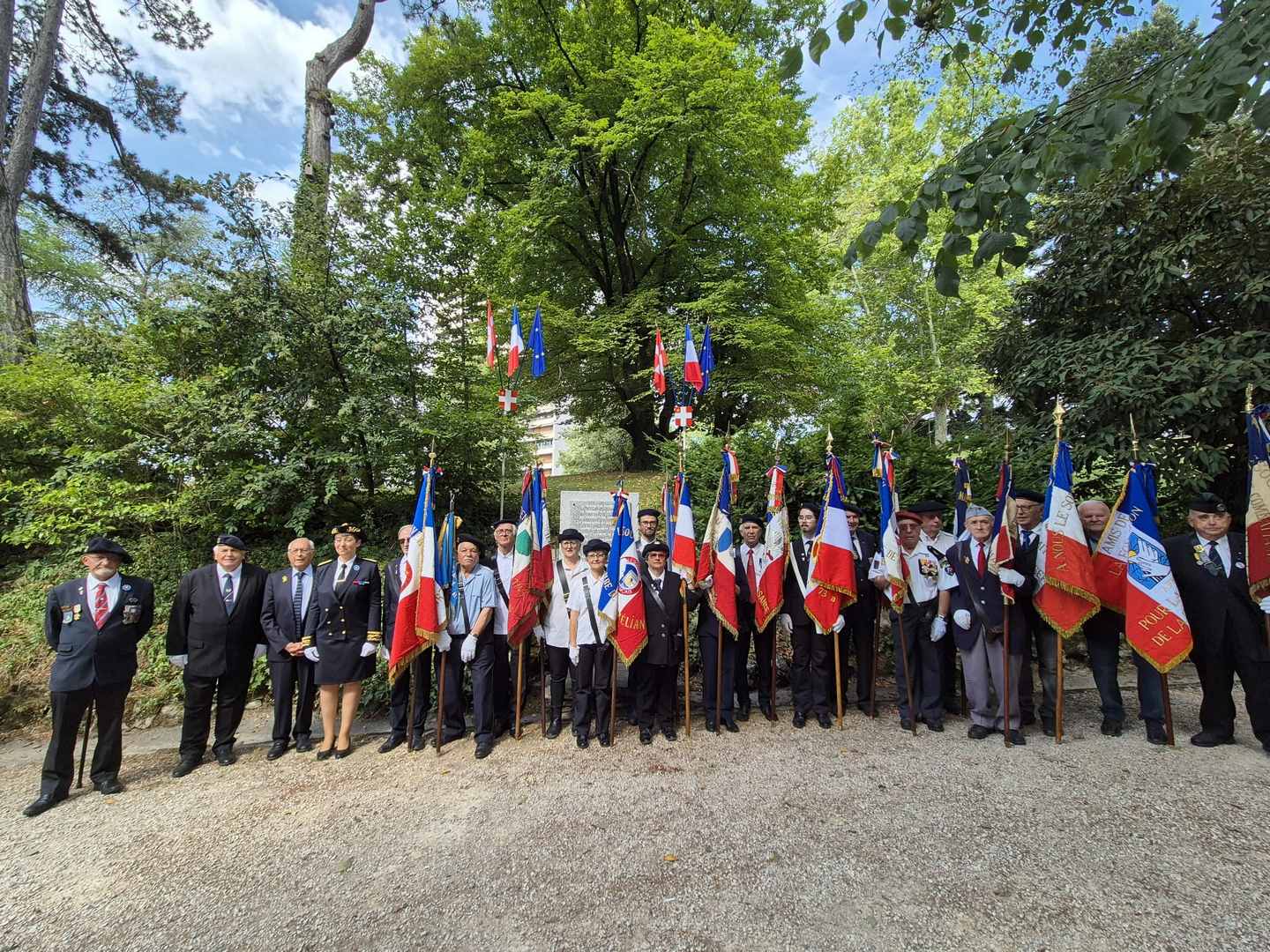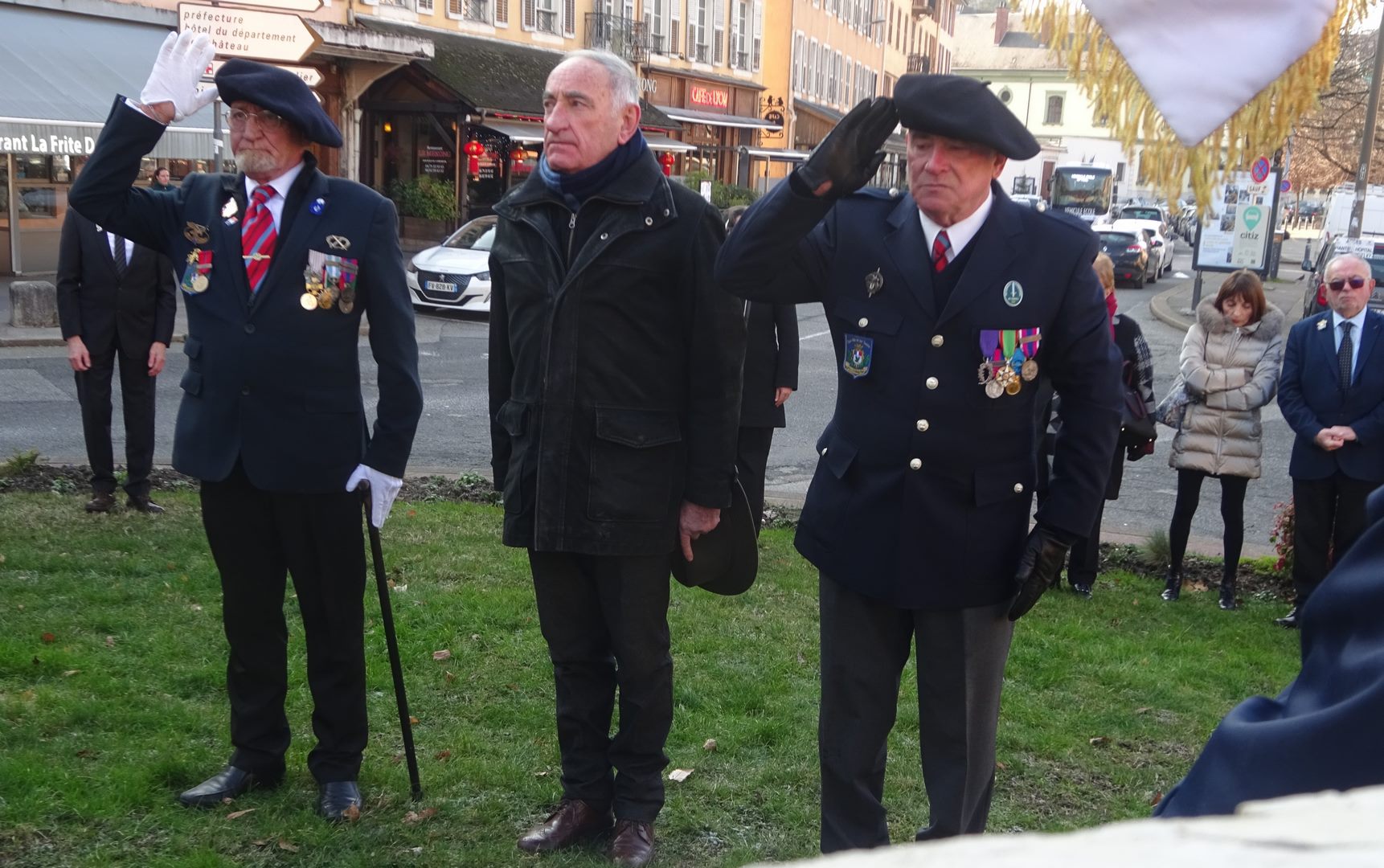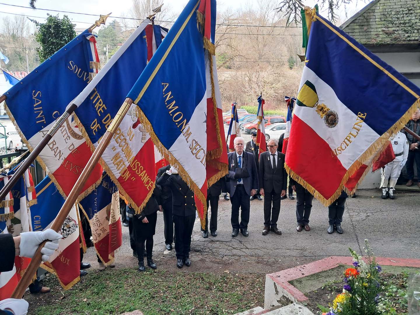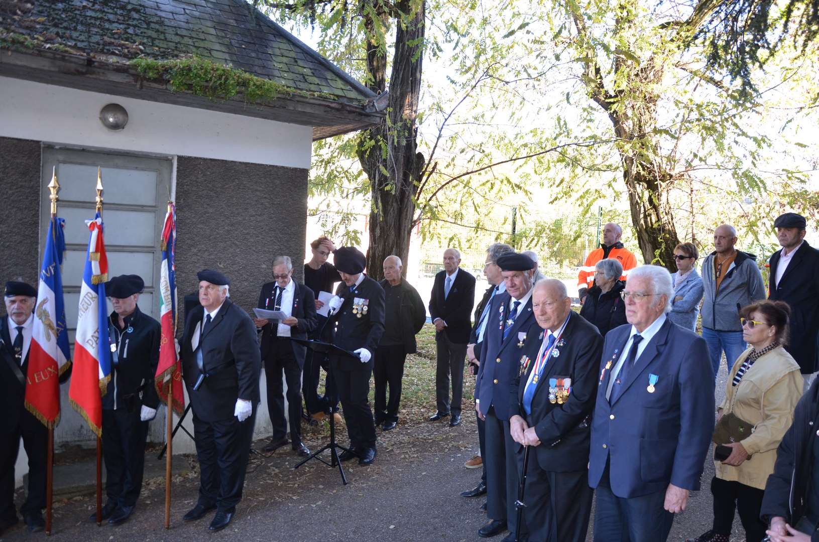De nombreux porte-drapeaux étaient présents, entourant la délégation du Souvenir français, les présidents de comité, Chambéry, Combe de Savoie, de Henri Gottero président des anciens combattants cheminots de Savoie ainsi que des associations mémorielles.