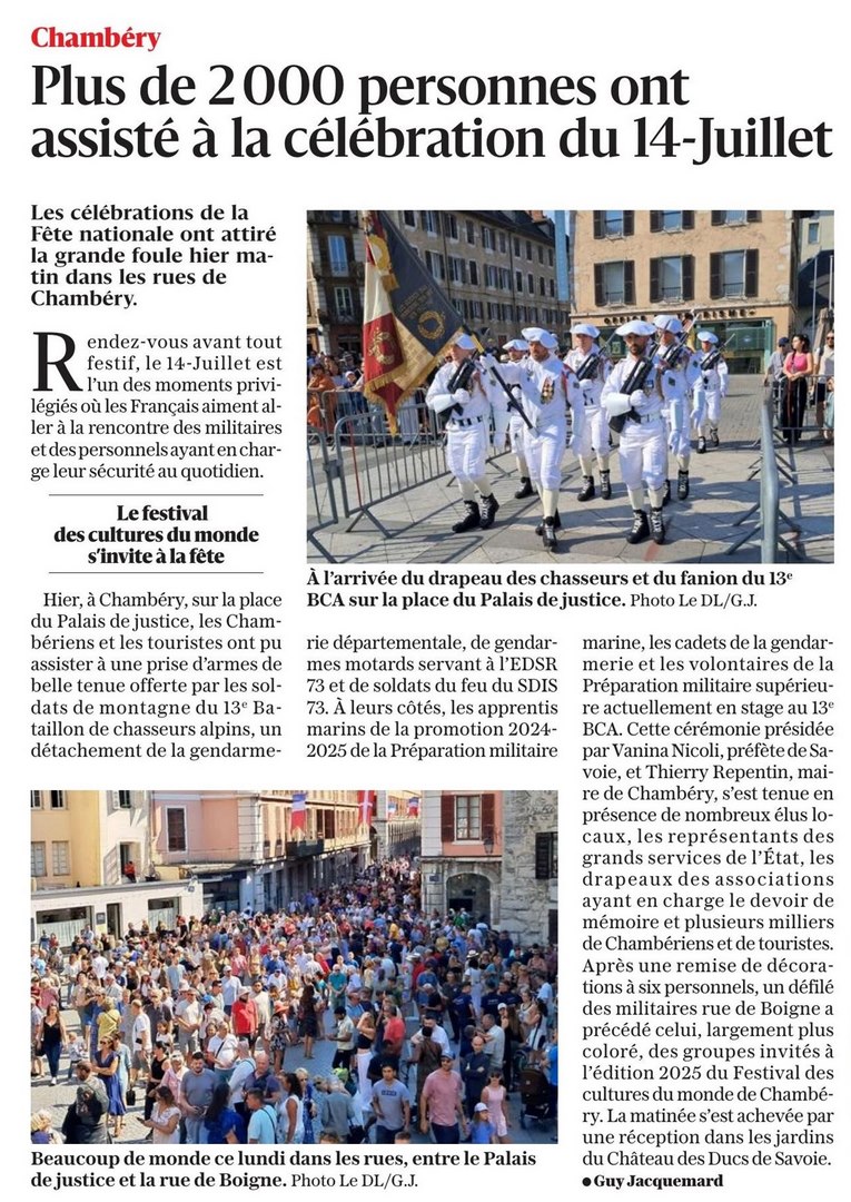 Prise d'armes ce 14 juillet 2025 par les soldats de Montagne du 13° BCA en présence des autorités civiles et militaires.