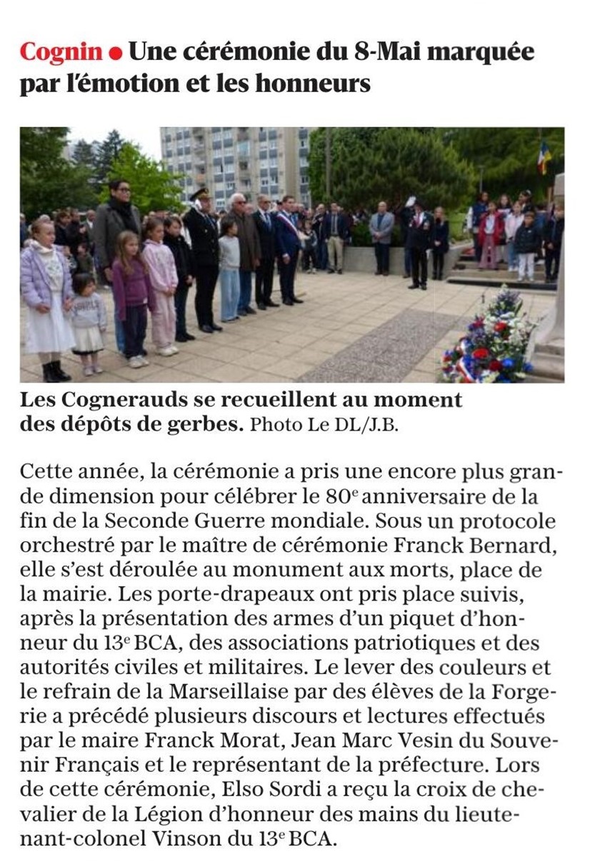 C'est en présence des autorités civiles et militaires que s'est déroulée la cérémonie du 8 mai 2025 à Cognin.