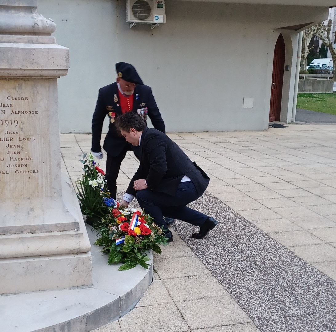 Une gerbe du Souvenir Français a été déposée par Frédéric Mareschal, D.G. une par le CO.MI.TES. par Mmes Fonsato et Bonilla puis une par Marie Dauchy, députée européenne et Brice Bernard, conseiller régional.