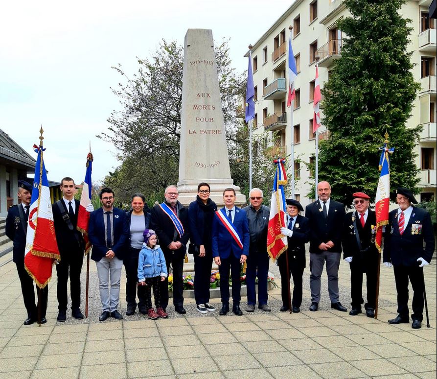 Cérémonie du 8 mai 2025 au Clos Savoiroux à Chambéry en présence des autorités civiles et militaires, des associations mémorielles, des pompiers, des porte-drapeaux.