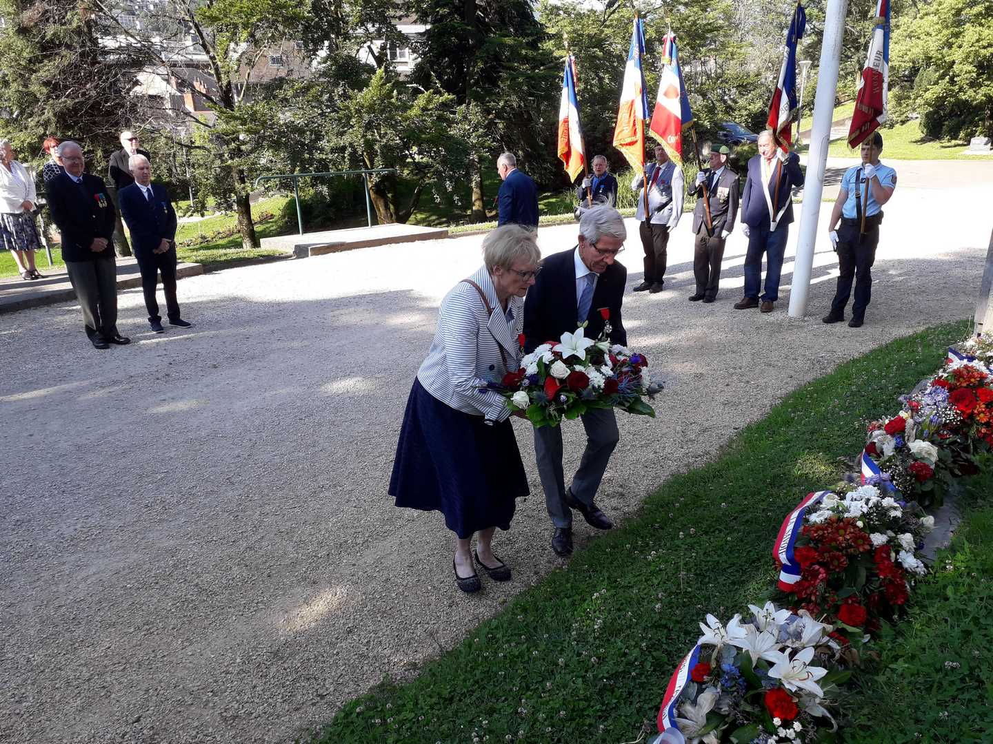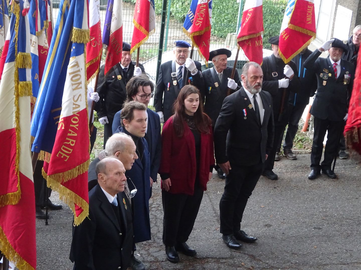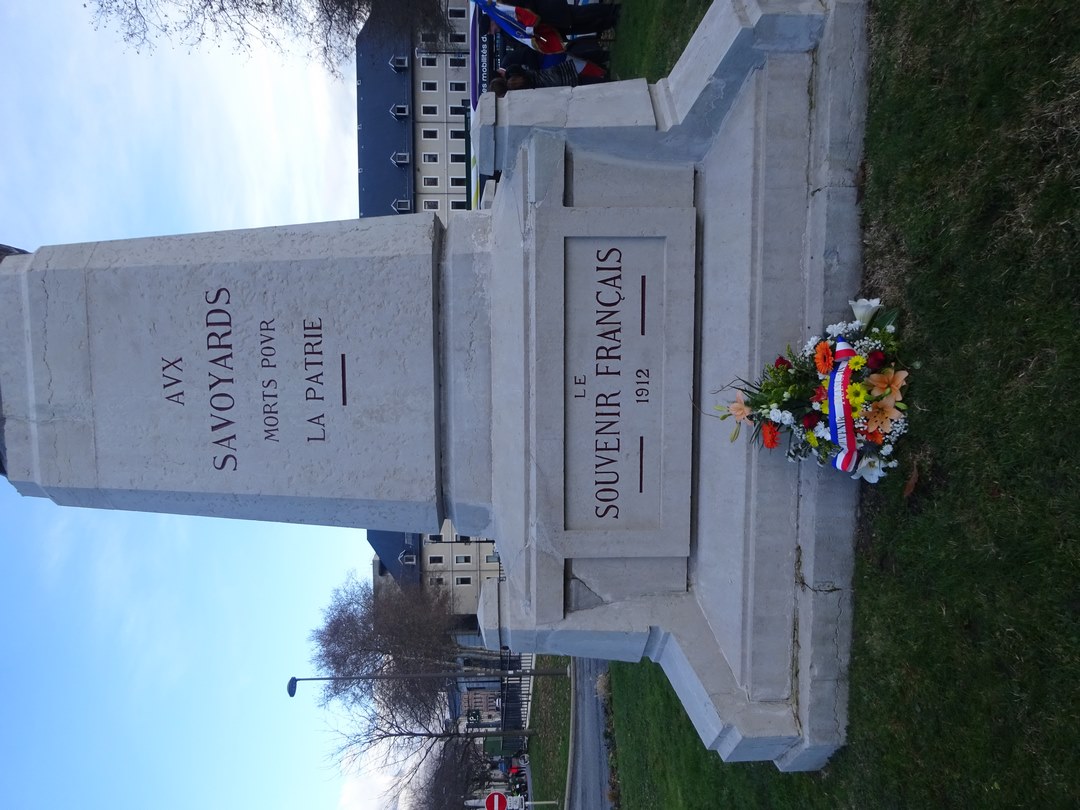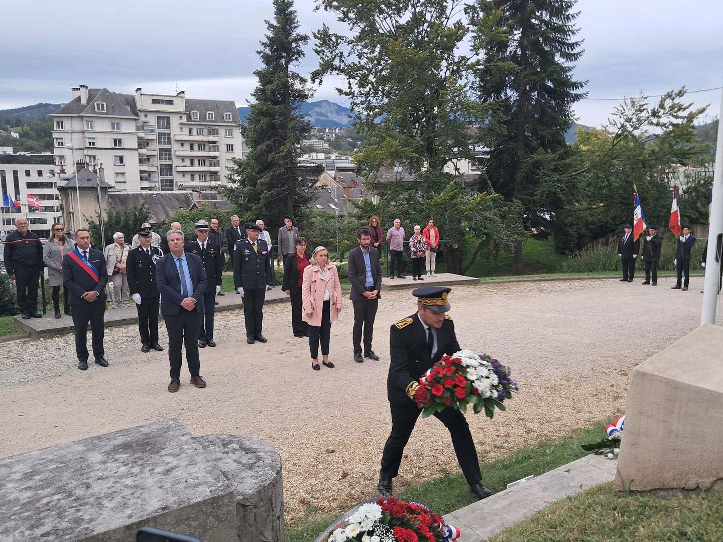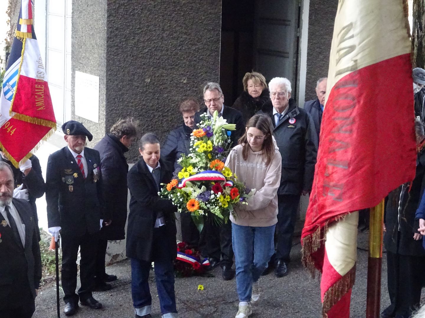 Dépôt de gerbe par les représentants . de l'Etat - secrétaire générale de la préfecture, . des Anciens Combattants : un ancien combattant, du Conseil Régional : Alexandra Turner, . du Conseil Départemental : Aloïs Chassot, . de la Municipalité : Gaëtan Pauchet, . de L'Assemblée Nationale : en son absence la gerbe a été d&posée par deux élèves de la classe défense du lycée du Nivolet de La Ravoire.