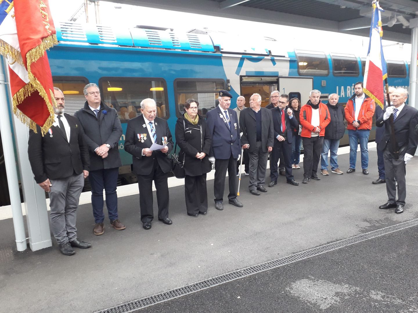 Vendredi 2 février 2024 une cérémonie hommage s’est déroulée au pied de la stèle édifiée à l’entrée du TechniCentre SNCF à Chambéry en présence des autorités civiles et militaire et de représentants de la SNCF. Le Souvenir français était représenté par Frédéric Mareschal délégué général et ses adjoints Jean-Yves Sardella, Michel Arnaud et Henri Gottero ainsi que par plusieurs comités, les associations mémorielles et de nombreux porte-drapeaux.