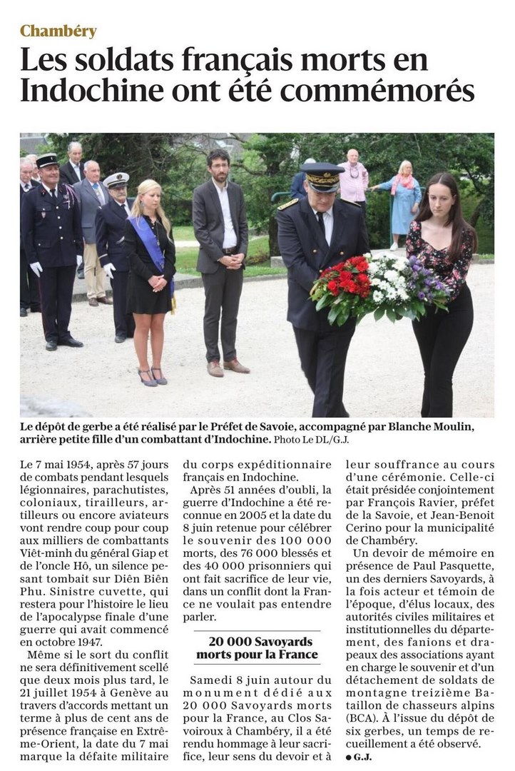 Le samedi 8 juin 2024, c'est en présence des personnalités civiles et militaires qu'un dépôt de gerbes a été effectué, en mémoire des combattants de la guerre d'Indochine, des associations mémorielles et des porte-drapeaux.