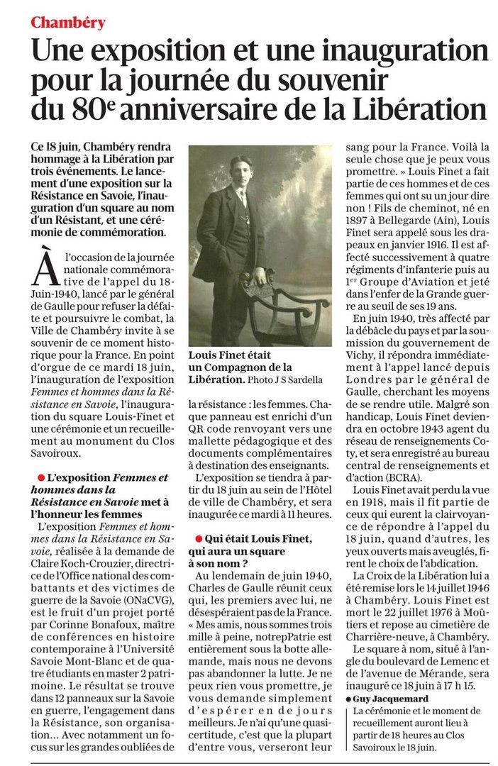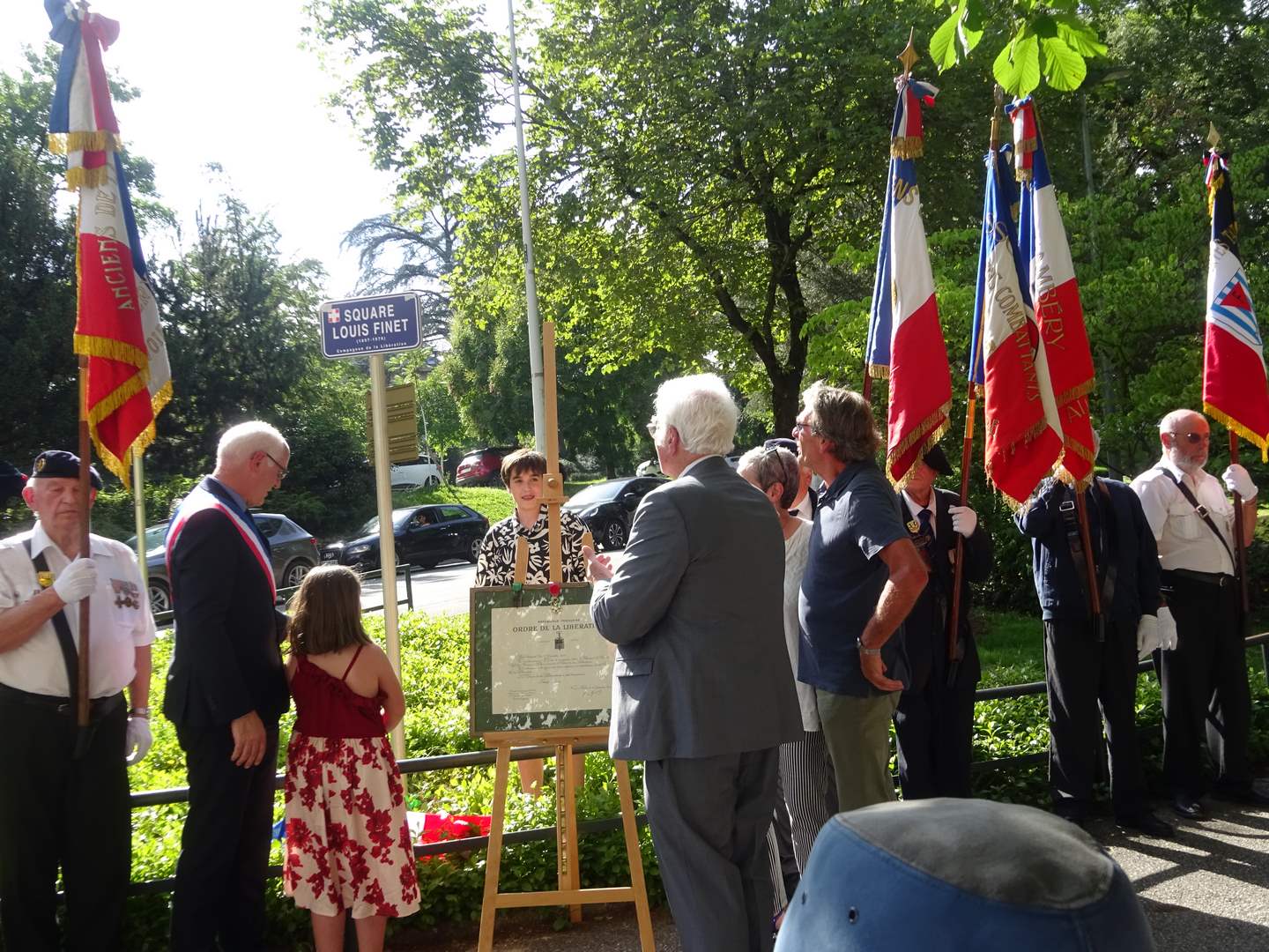 Mardi 18 juin 2024 a vu le dévoilement de la plaque du Square Louis Finet, situé au niveau des feux de Mérande, sous le Clos Savoiroux. La maison de Louis Finet se situait tout proche de ce lieu. C'est en présence de sa famille, de Monsieur le maire de Chambéry, des autorités civiles, de la délégation générale du Souvenir Français, que Jean-Yves Sardella, DGA, à retracé le parcours de Louis Finet.