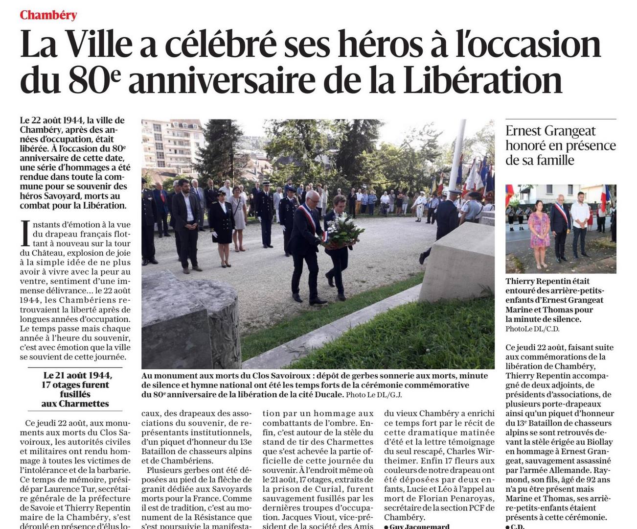 Le 22 août 1944, les chambériens retrouvaient leur liberté. Chaque année, à cette date anniversaire, 4 cérémonies se déroulent sur les différents lieux.