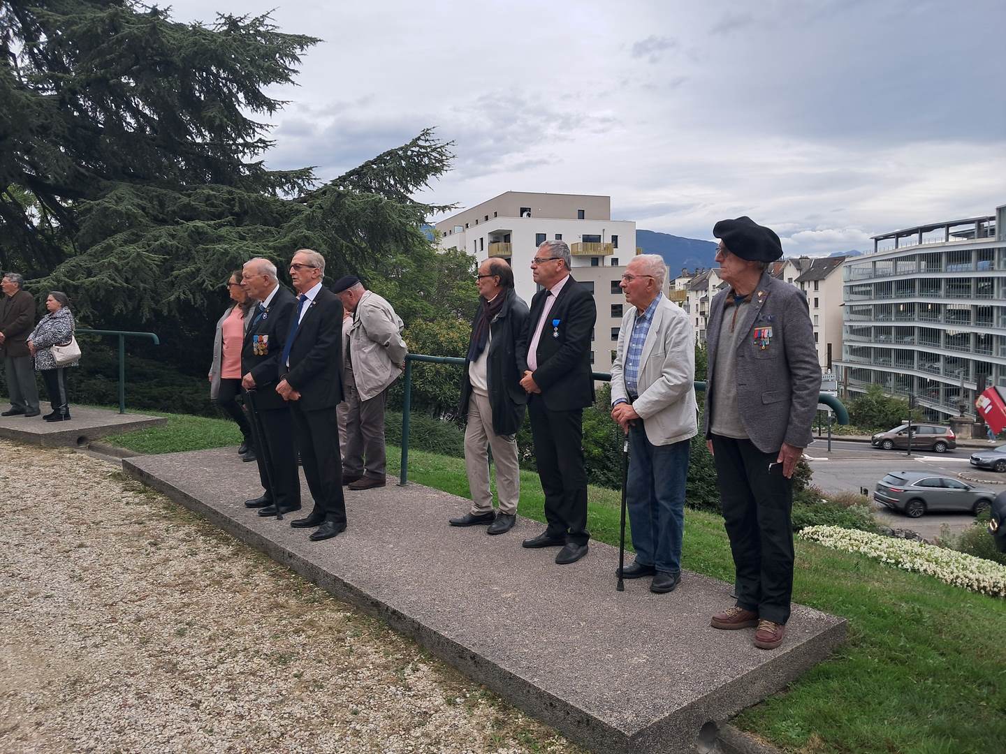 Mercredi 25 septembre 2024, à Chambéry, s'est déroulée la cérémonie patriotique pour la journée nationale des Harkis et autres membres des formations supplétives au Clos Savoiroux en présence des autorités civiles et militaires, départementales et locales, des représentants des associations de Harkis, de familles de Harkis, des associations patriotiques, de la Délégation Générale du Souvenir Français de Savoie, représentée par Henri Gottero (DGA) et de Jean-Marc Vesin, secrétaire, de plusieurs comités du Souvenir Français et de nombreux porte-drapeaux.