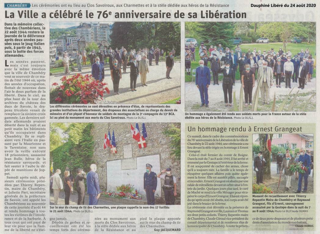 C’est en présence de Thierry Repentin maire de Chambéry, de Madame la Secrétaire Générale de la Préfecture, des membres du Conseil régional et départemental, de Madame Cléry-Barraud directrice départementale de l'ONACVG, des associations d’anciens combattants, des porte-drapeaux, du Délégué Général du Souvenir Français de Savoie, Frédéric Mareschal, des Délégués Généraux Adjoints Jean-Yves Sardella et Henri Gottero, et Edith Sardella Trésorière de la délégation générale et d’un nombreux public, respectant les contraintes sanitaires en vigueur que se sont déroulées ces cérémonies mémorielles.