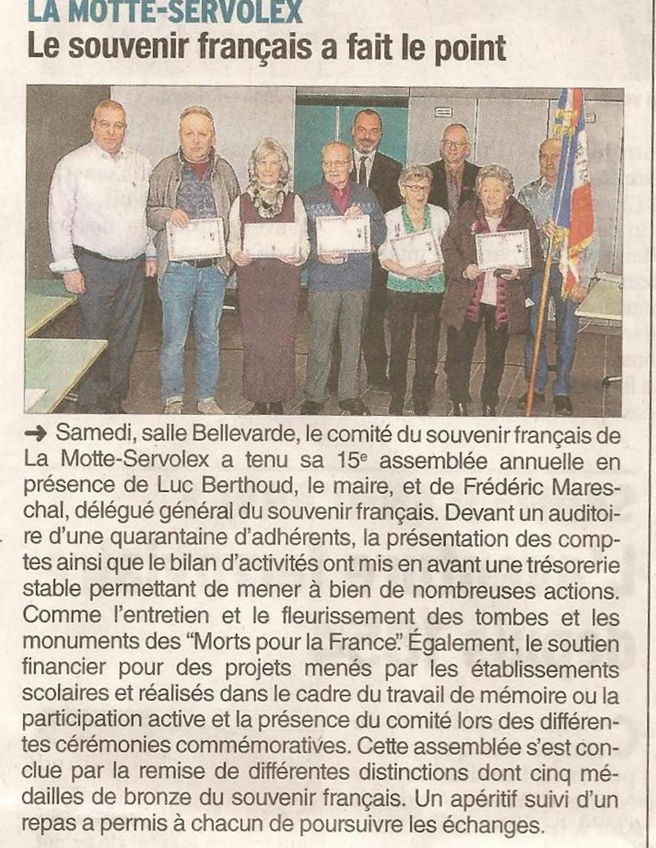 C'est en présence de monsieur Luc Berthoud, maire de la Motte Servolex et de Jean-Yves Sardella,délégué géneéal adjoint représentant Frédéric Mareschal délégué général de Savoie et de plus de cinquante adhérents que s'est déroulée l'assemblée annuelle des adhérents du Comité le samedi 25 janvier 2020 à la Motte-Servolex.