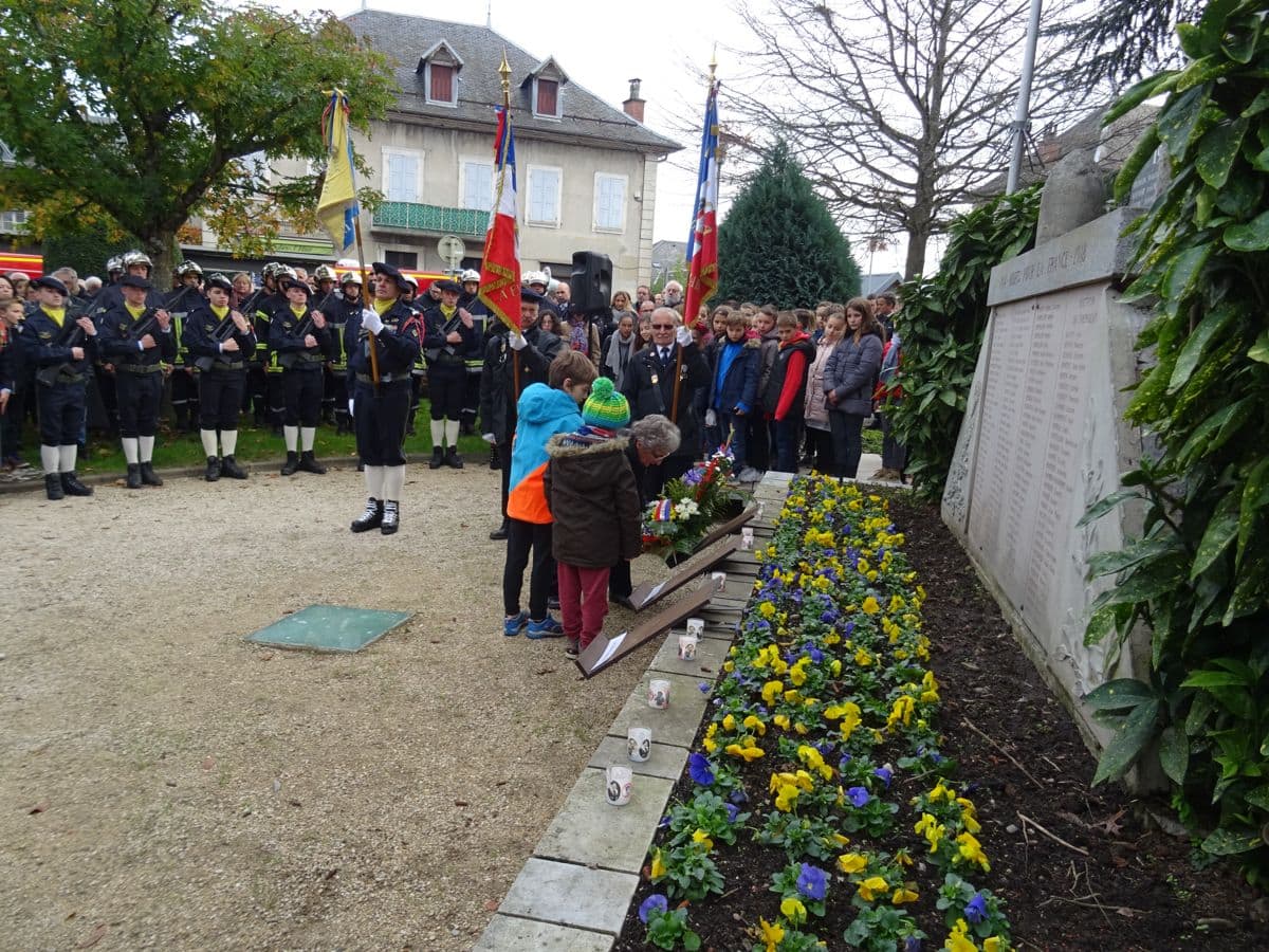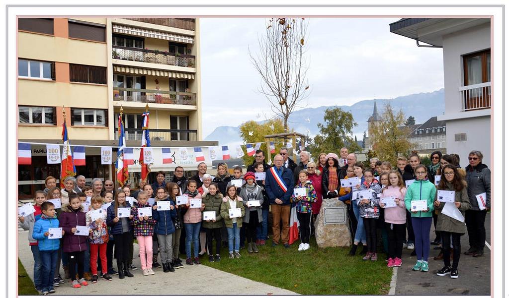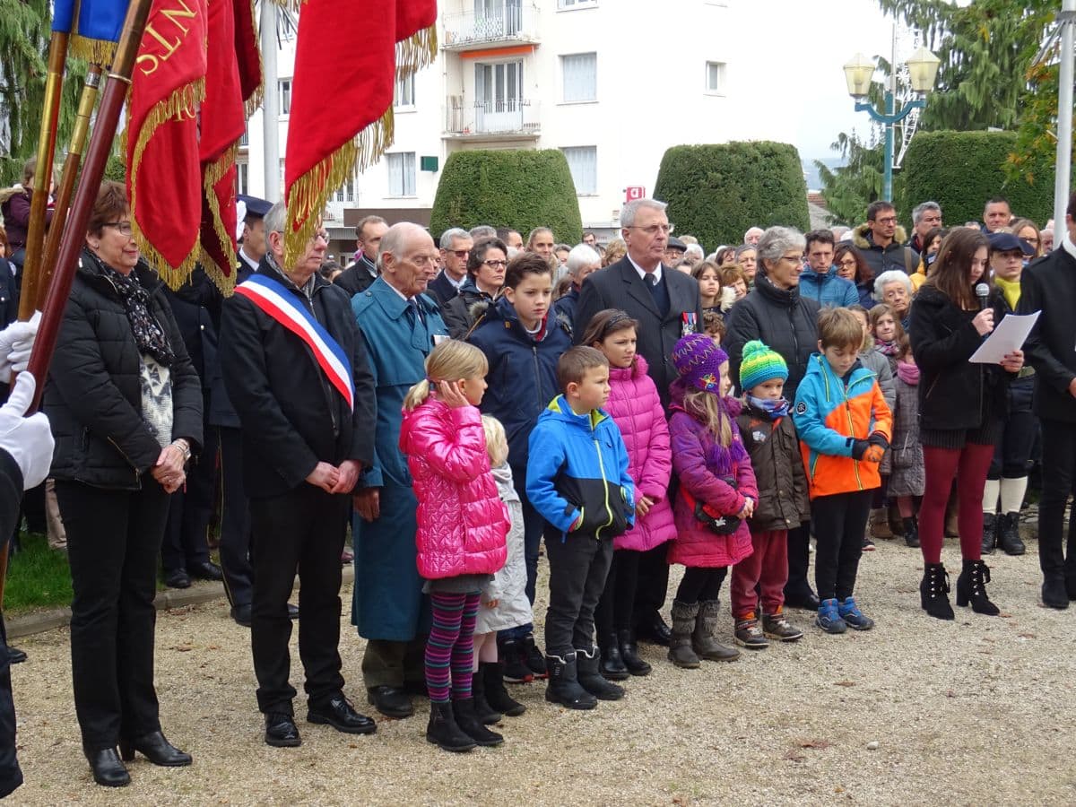 Entourés de Monsieur le Maire Luc BERTHOUD, du souvenir Français, des présidents des Anciens Combattants, d'un piquet du 13e BCA, les enfants du collège George Sand ont lu des lettres de poilus et de soldats allemands, ont effectué l'appel aux Morts tandis que les petits de l'école du Picolet ont chanté la Marseillaise avec leur professeur.