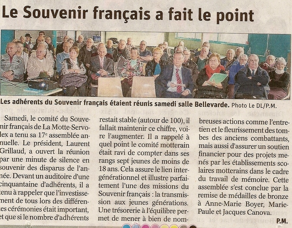 Etaient présents : Mme Edith SARDELLA, trésorière de la Délégation Générale de Savoie, Mme Arlette ROUTIN, Vice-Présidente du Comité de Montmélian et Mr Jean-Pierre DUROT, porte-drapeau du même comité.