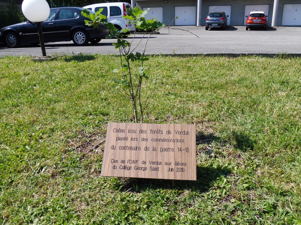 En préambule à cette remise, une plaque fut inaugurée. En effet, à l’occasion du Centenaire de la Grande Guerre, l’Office Nationale des Forêts a offert un chêne de Verdun au collège et celui-ci fut planté le 08 novembre 2018.