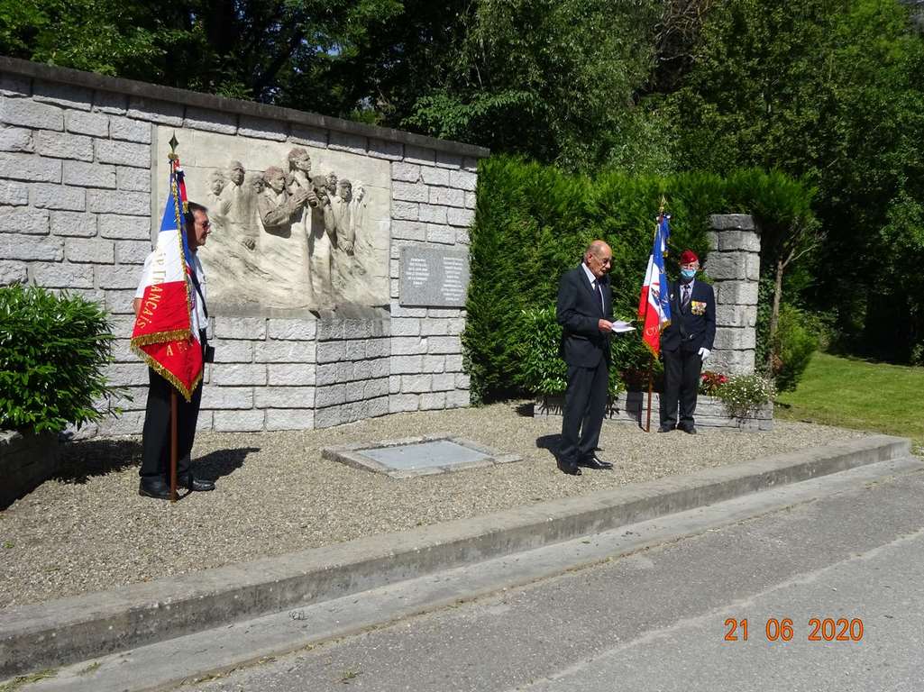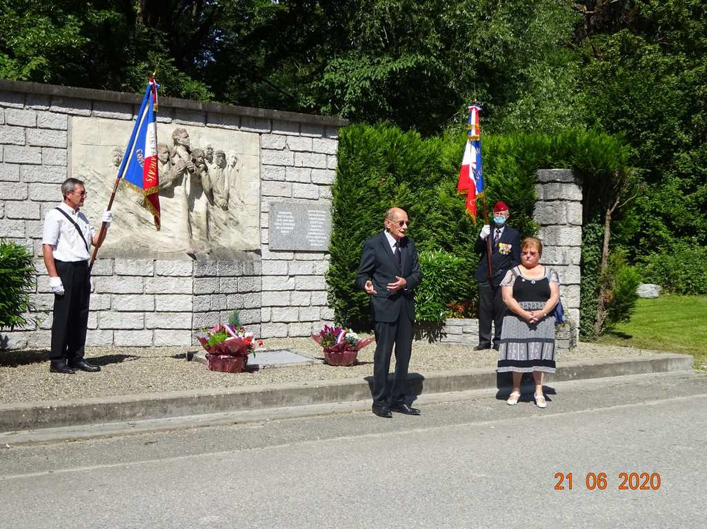Dimanche 21 juin 2020 s'est déroulée la cérémonie en hommage aux fusillés d'Arbin, organisé par le Souvenir Français et la municipalité d'Arbin en présence de Michel Arnaud, délégué général adjoint du Souvenir Français et le comité de Montmélian.