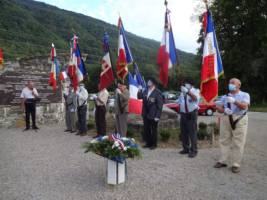 Mardi 25 août 2020 nous avons tous assisté, à la cérémonie, au Mémorial de la Résistance, situé au lieu-dit Pont Barbin à Villard-Léger, de la libération du Val Gelon en présence de Pierre Girard-Madoux représentant l’ANACR, la Délégation Générale du Souvenir Français de Savoie, représentée par Jean-Yves Sardella, Délégué Général Adjoint, Arlette Routin Secrétaire de la Délégation, Ghislain Garlatti, président du comité de Montmélian, de nombreux maires de la communauté de commune Coeur de Savoie, la gendarmerie, les associations d’Anciens Combattants, les porte-drapeaux et les autorités locales.