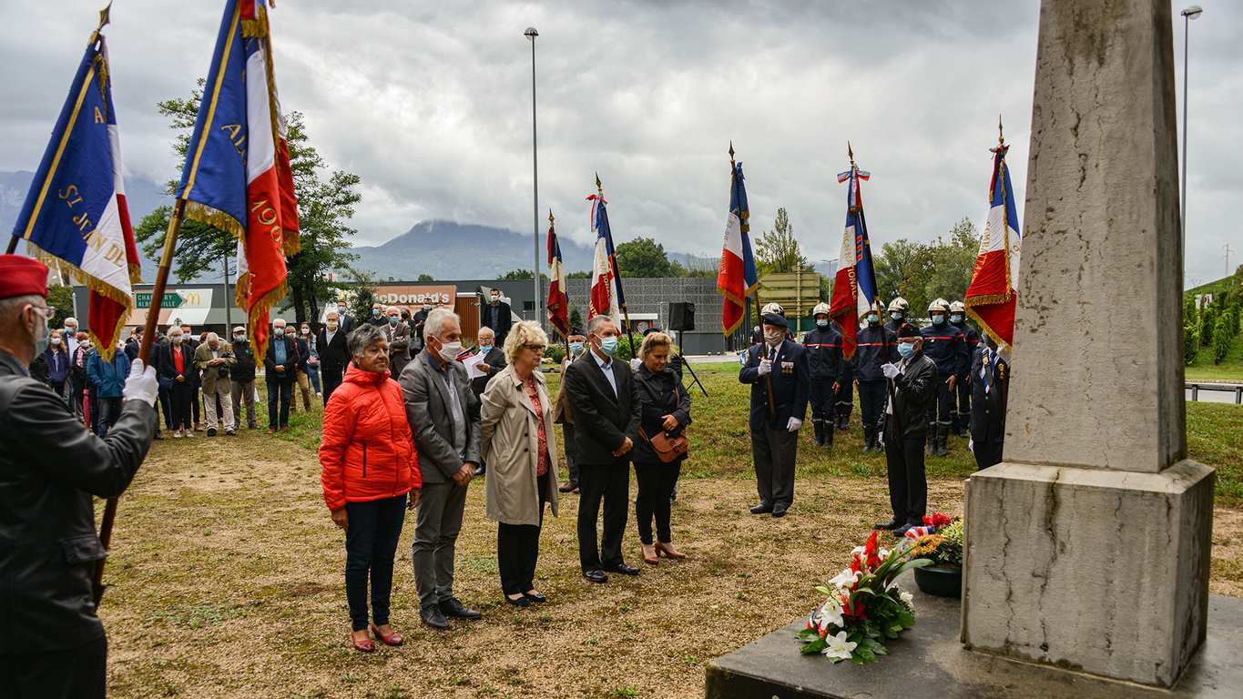 C'est en présence de Mesdame Jacqueline Tallin, conseillère départementale, Béatrice Santais, Maire de Montmélian, Caroline Levannier, maire de Francin, de Mrs Jean-François Duc, conseiller départemental, Franck Villand, maire de Porte-de-Savoie, des maires des communes voisines, des sapeur pompiers, de la gendarmerie, du Souvenir Français représenté par Frédéric Mareschal,, délégué général, Jean-Yves Sardella, délégué général adjoint et porte drapeau de la commune déléguée de Francin, de Ghislain Garlatti, président du comité de Montmélian, de René Springolo, président du comité de La Ravoire, de membres et portes-drapeaux de différents comités et des associations mémorielles, que s'est déroulée la cérémonie commémorative du 76ème anniversaire de la libération de Montmélian.