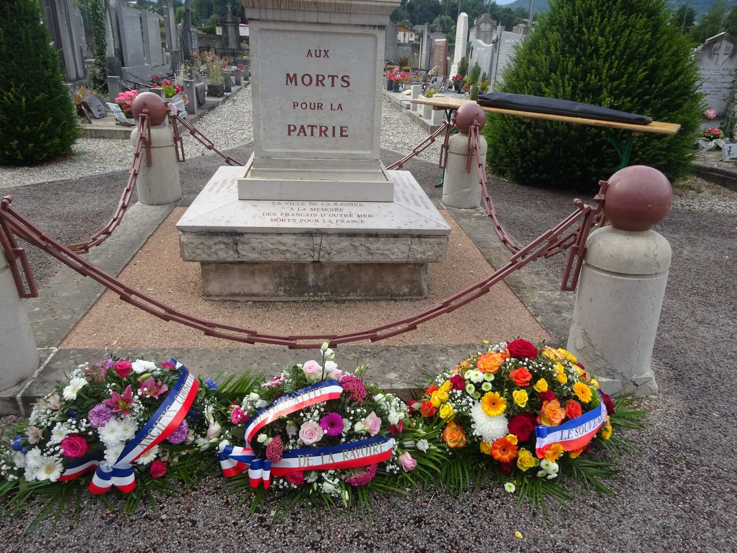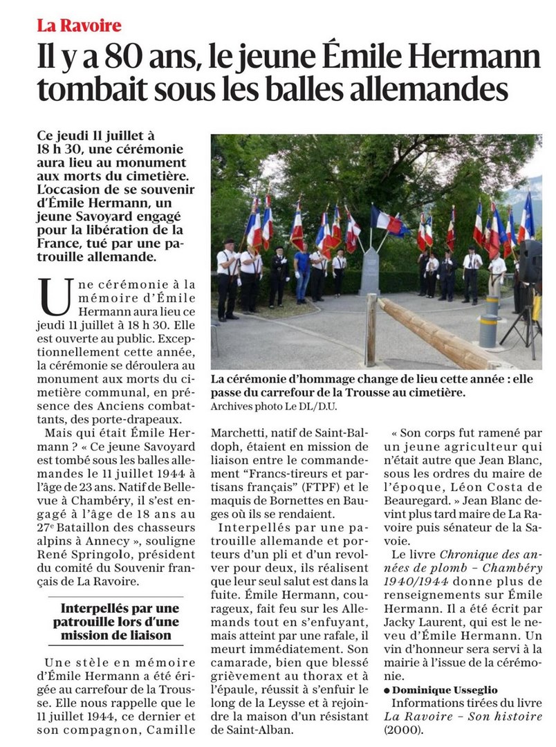 En raison des travaux au carrefour de la Trousse où se trouve la stèle, la cérémonie s'est déroulée au monuments aux Morts, au cimetière de La Ravoire.