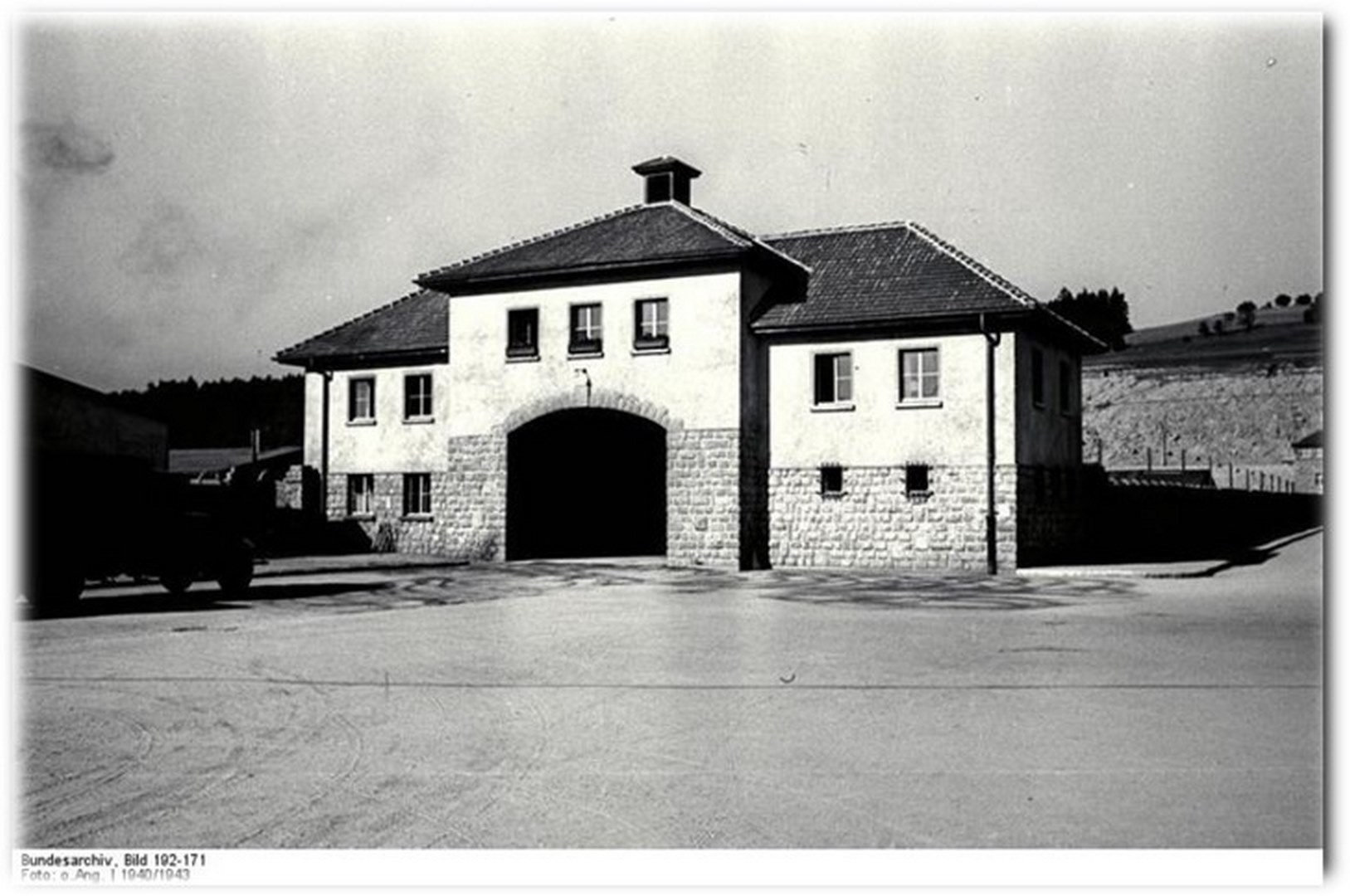 - Entrée du camp Gusen I le « Jourhaus » 1941 Bundesarchiv, Bild 192-171 / CC-BY-SA 3.0