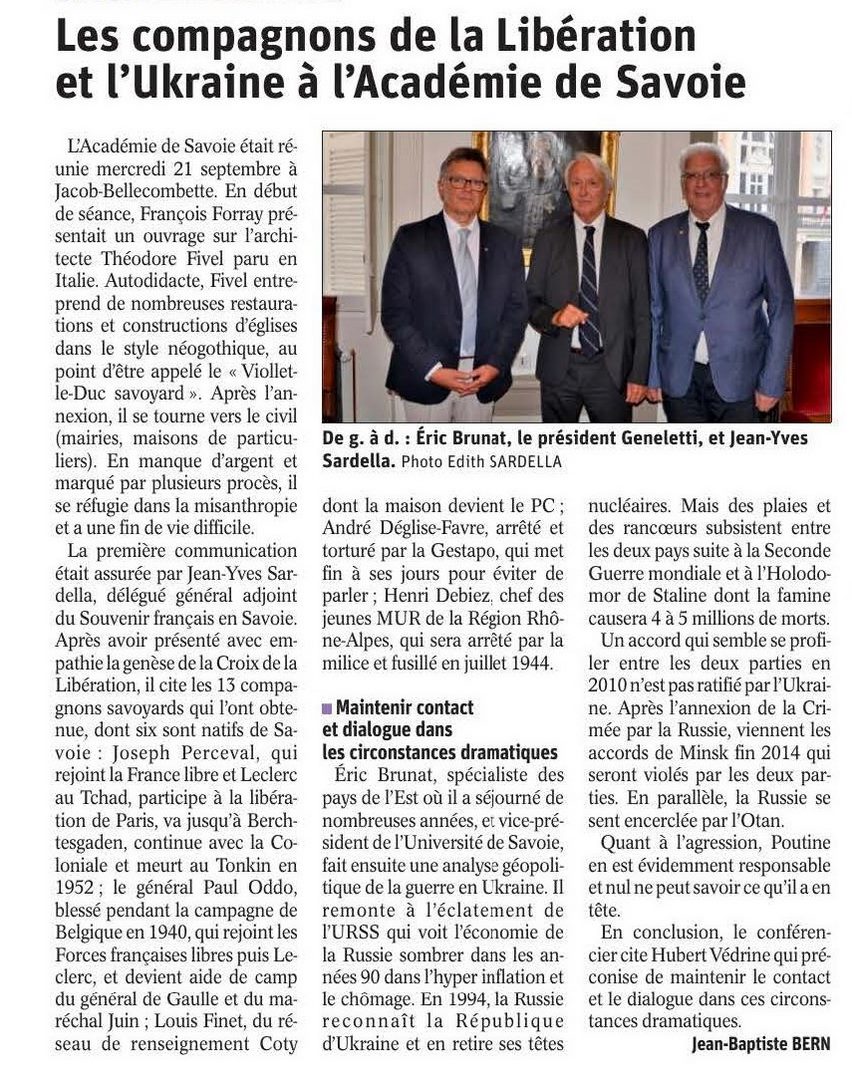 par Jean-Yves Sardella – Délégué Général Adjoint du Souvenir Français de Savoie.