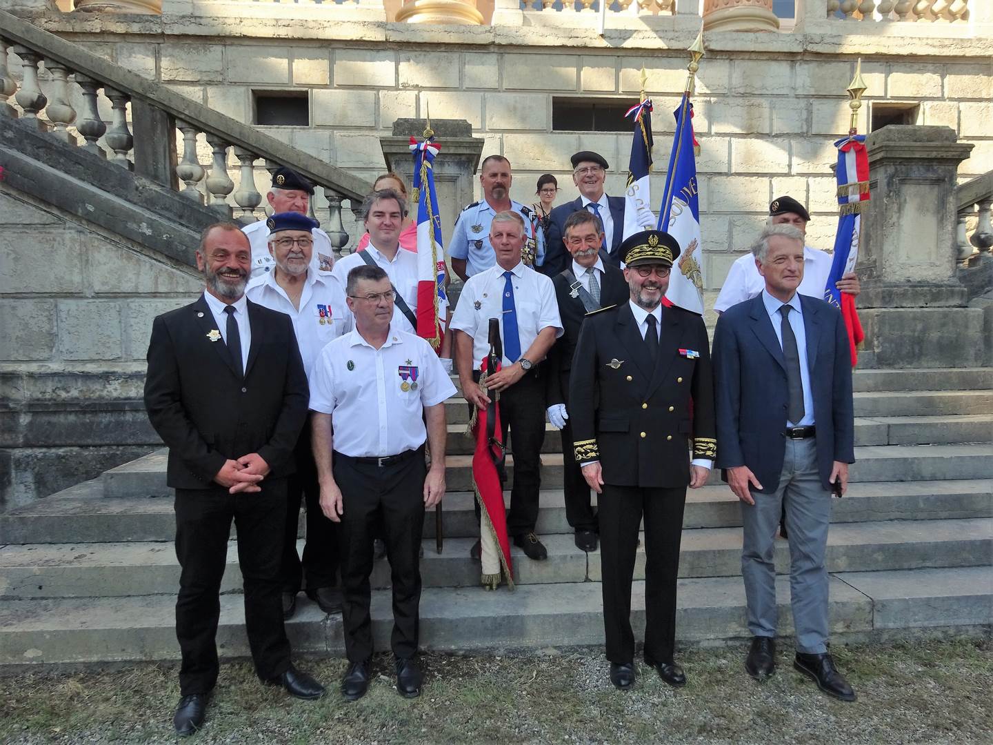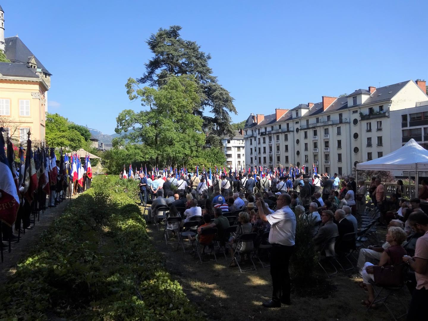 Ce mercredi 13 juillet 2022, dans les jardins du château des ducs de Savoie, Pascal Bolot, préfet de la Savoie, a rendu hommage aux porte-drapeaux des associations : Anciens Combattant et Mémorielles du département de la Savoie, qui sous la pluie, dans le vent, sous la neige et par des températures caniculaires, sont toujours présents lors des cérémonies patriotiques et portent fièrement l'emblème : drapeau où fanion dont ils ont la charge. Ce sont plus d'une centaine de portes drapeaux qui furent réunis à cette occasion autour de la fontaine du château, ce qui a permis à certains de se rencontrer. La délégation générale de Savoie est plusieurs comités du Souvenir Français et leurs porte-drapeaux étaient présents.